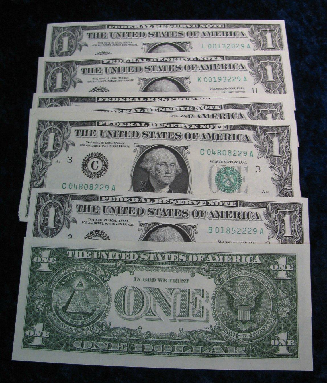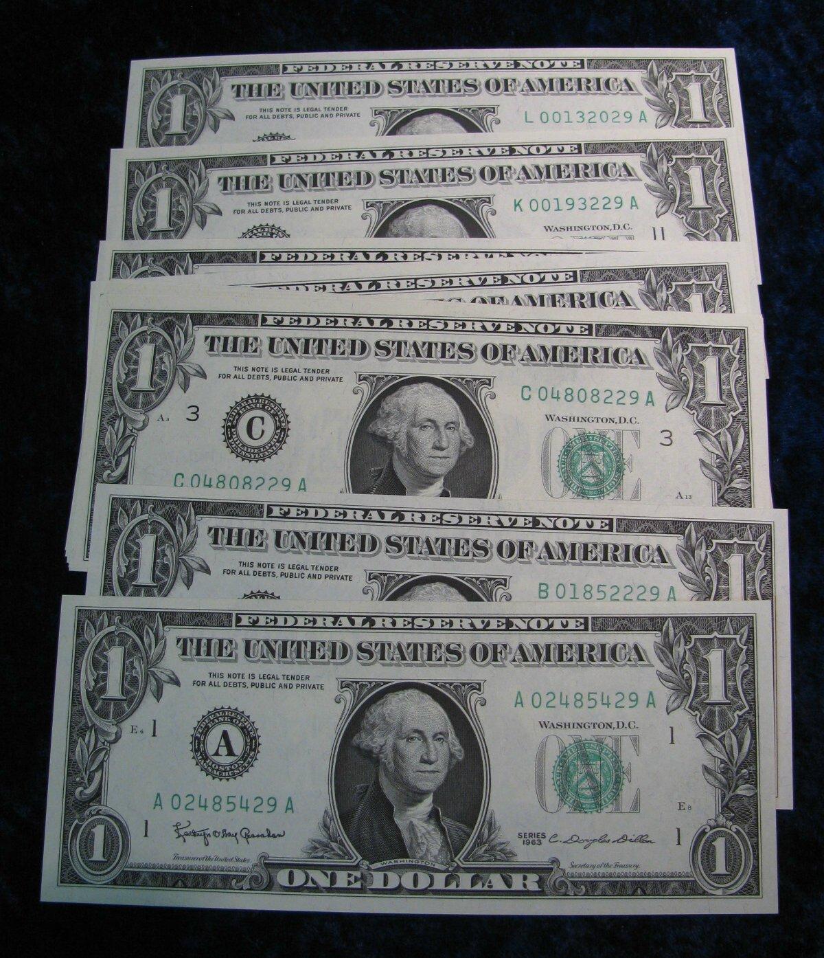 448. Complete Set of 12 Districts $1 Federal Reserve Notes all with serial numbers ending in "29". All Crisp Uncirculated.