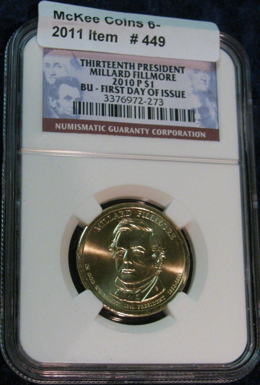 449. 2010 P Millard Fillmore Dollar NGC slabbed BU First Day of Issue.