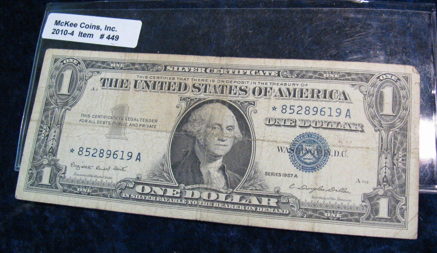 449. Series 1957A $1 Star Replacement Silver Certificate. VG-8.