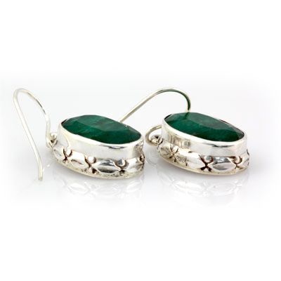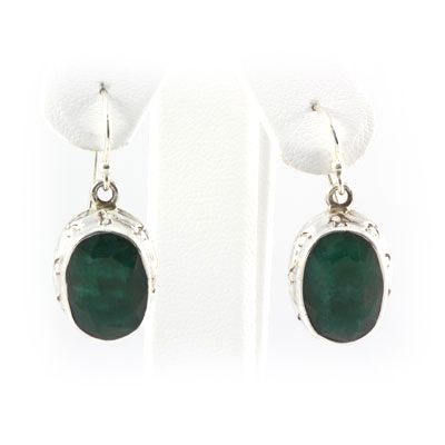 44ctw Oval Emerald Silver Hook Earring **|**|** 44ctw Oval Emerald Silver Hook Earring ; MSRP: $400