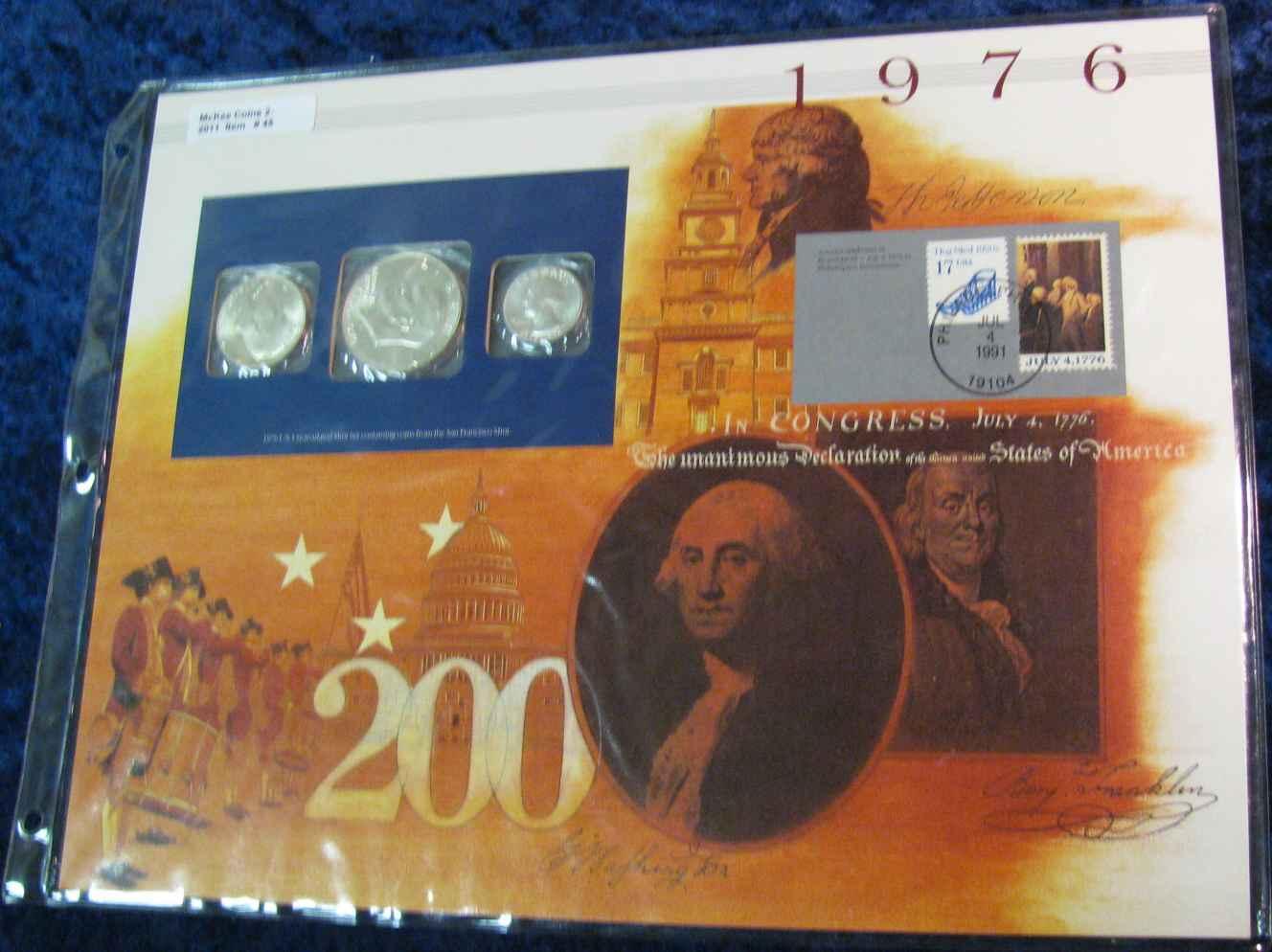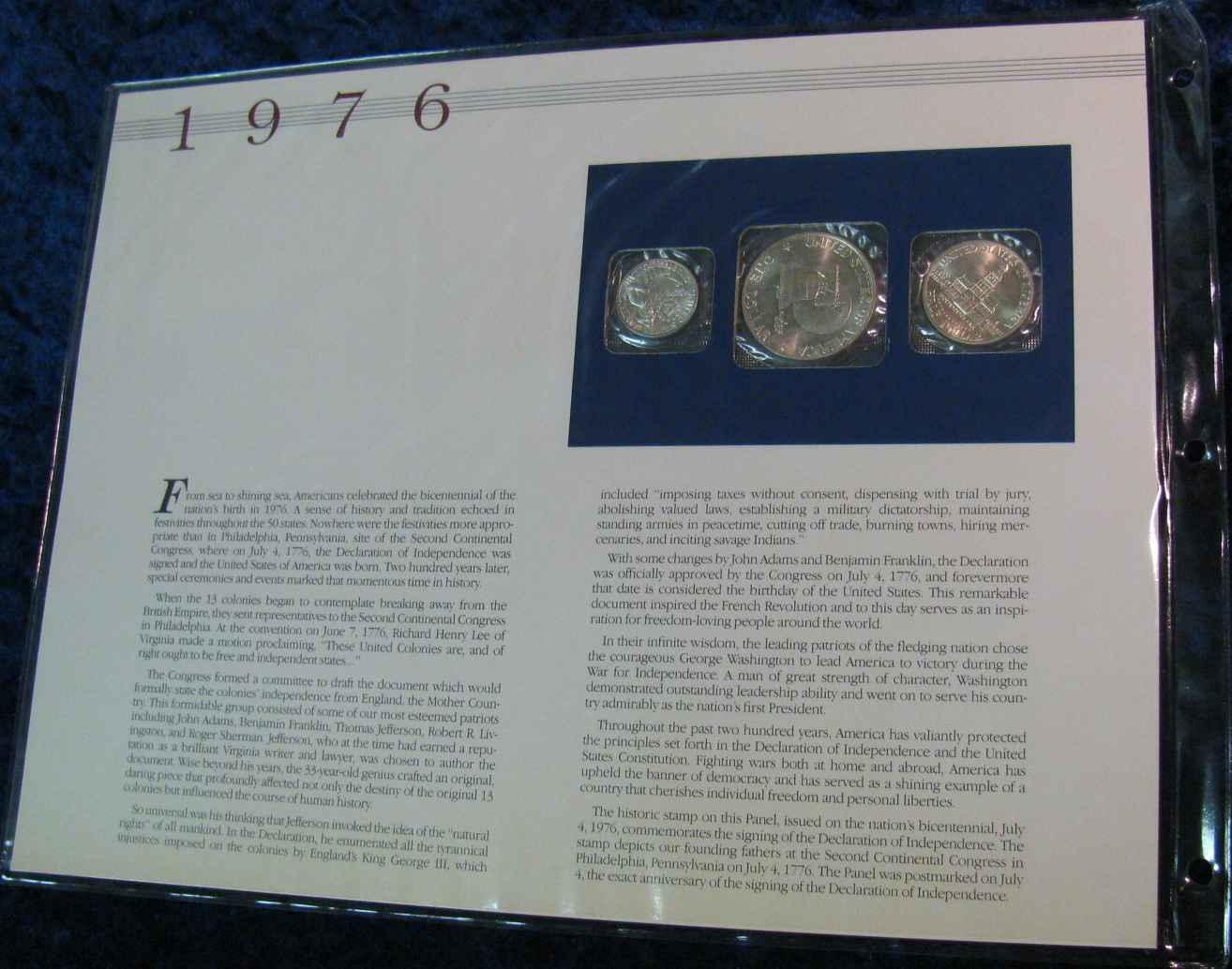 45. 1976 U.S. Silver Three-Piece Mint Set in a special display page.