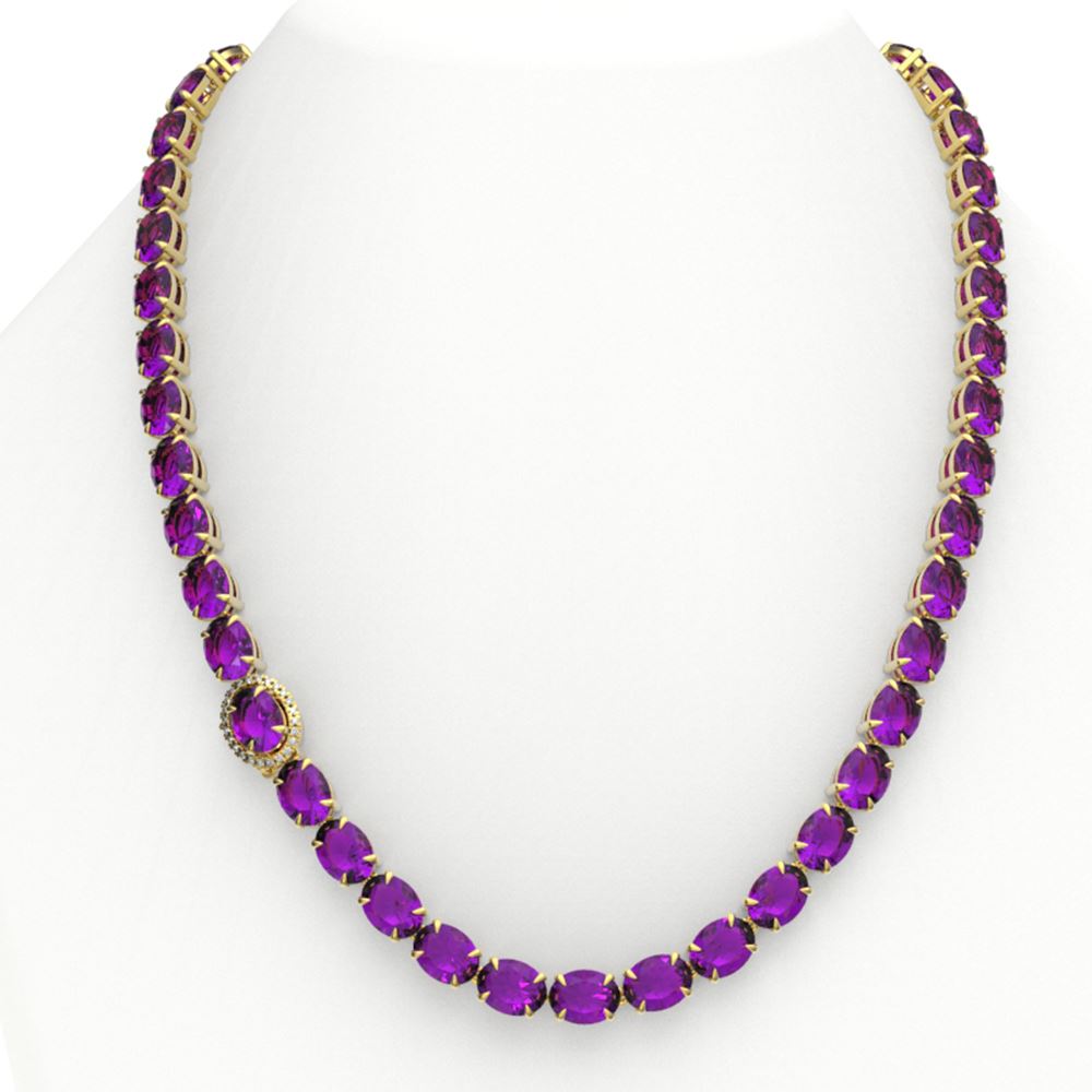 REF-263H6R - SKU: 40257 ---- 45.25 ctw Amethyst & VS/SI Diamond Micro Pave Necklace 14k Yellow Gold