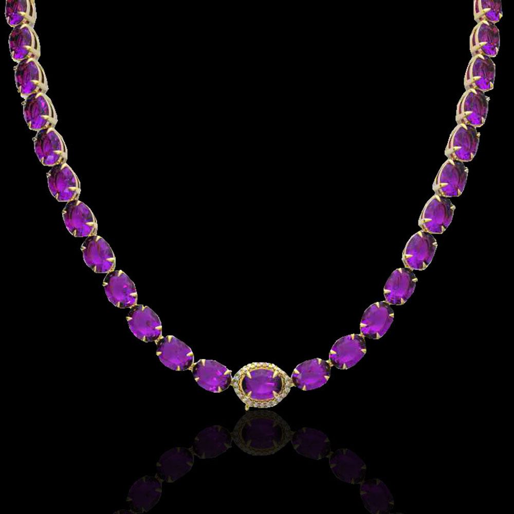 REF-263H6R - SKU: 40257 ---- 45.25 ctw Amethyst & VS/SI Diamond Micro Pave Necklace 14k Yellow Gold