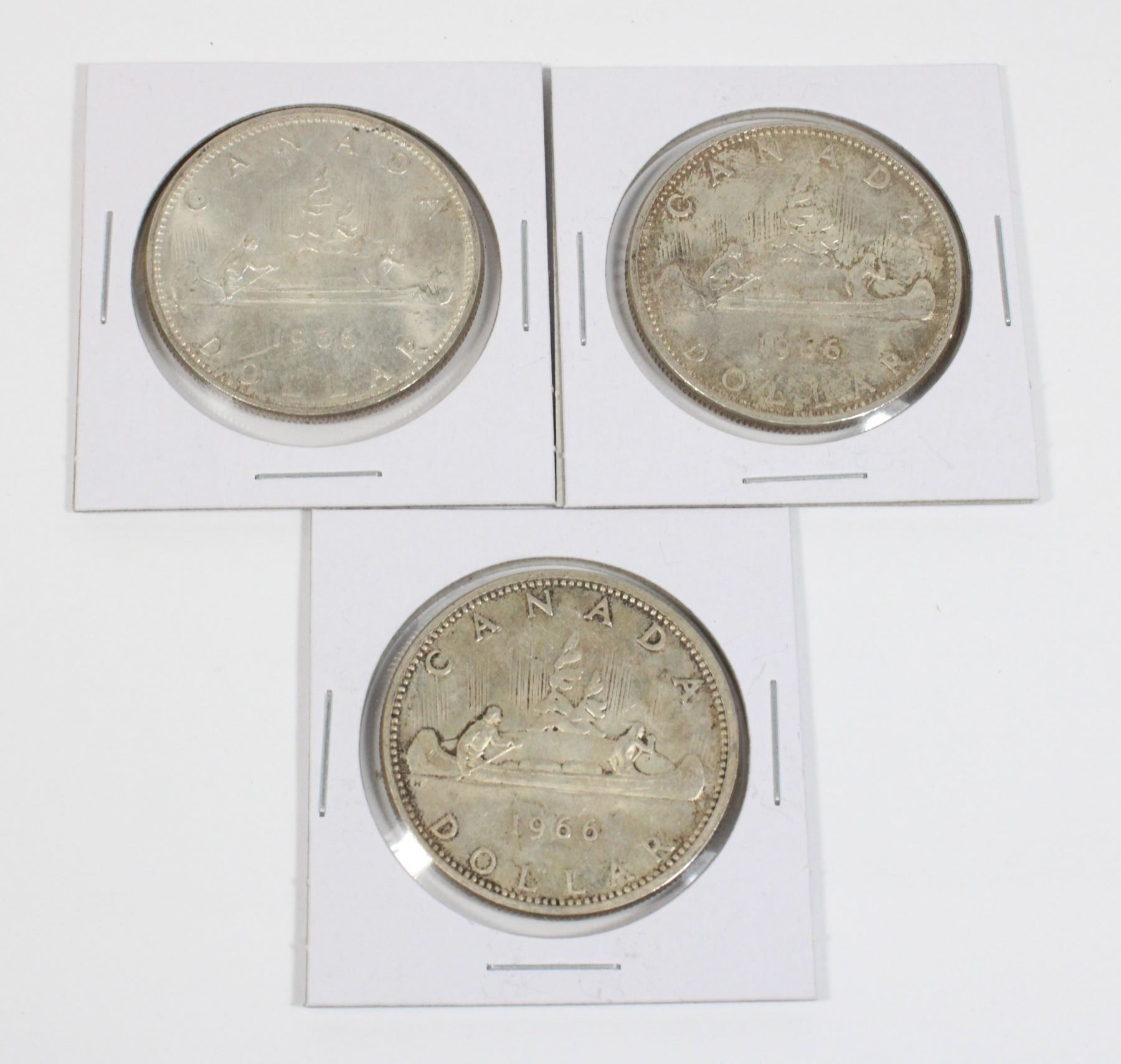 #45 3 1966 CANADA VOYAGUER ONE DOLLAR SILVER COINS