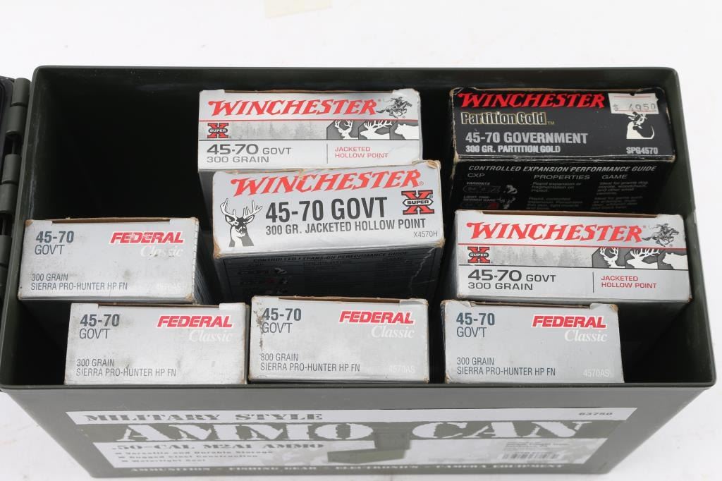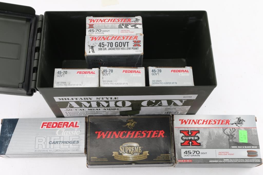 Approx. 150 rounds of 45-70 factory new ammunition. approx. 80 rds of Winchester 300 Gr. JHP & approx. 70 rds of Federal 300 Gr. HP. All in factory boxes.