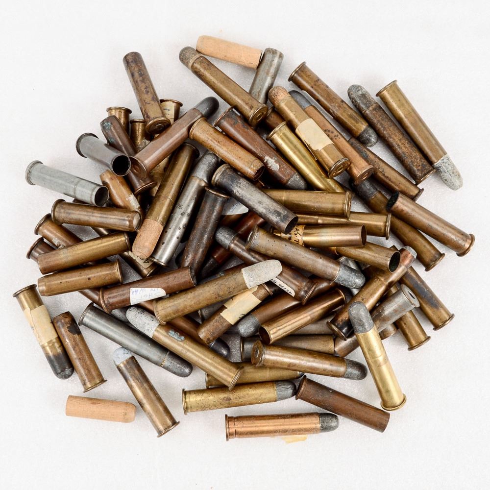 Includes a large variety of ammo including WRA, 4 UMC wood blank, 2 REM UMC blanks, Peters blank, WCC blank, 45-70 Benet, Peters ball, USC Co, Winchester Government Contract, Winchester 405 gr, UMC Ball, WRA, UMC Riot Load, WCC Line Throwing Blanks, and more.