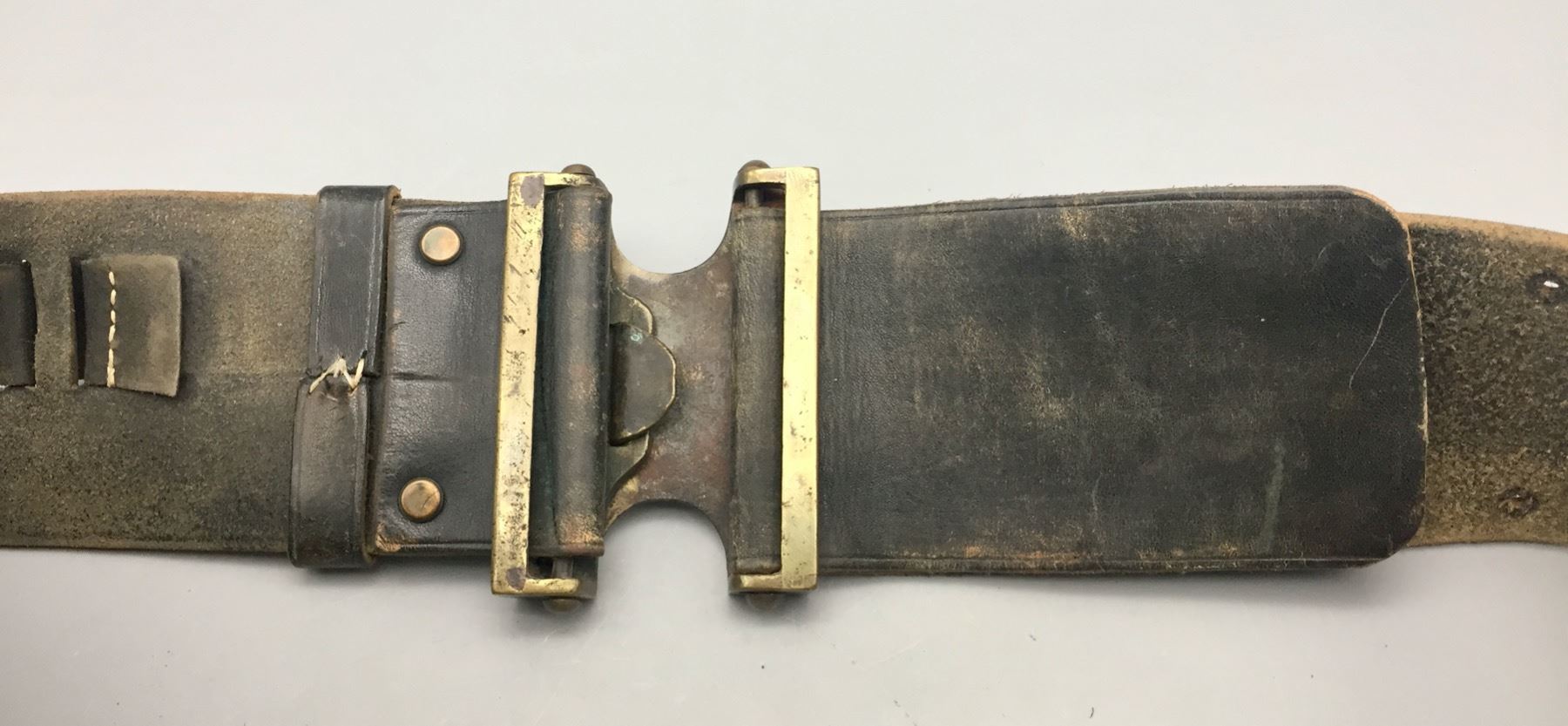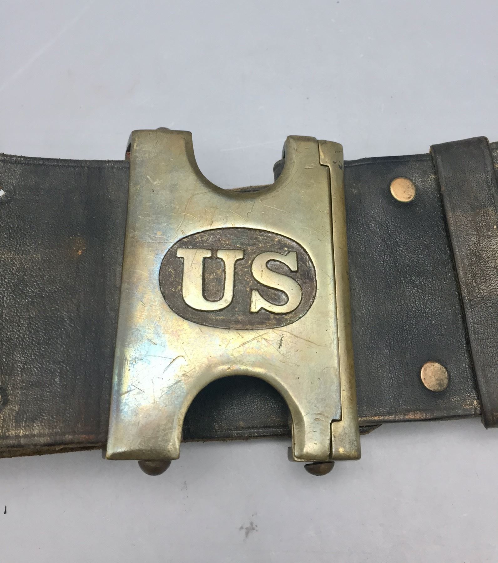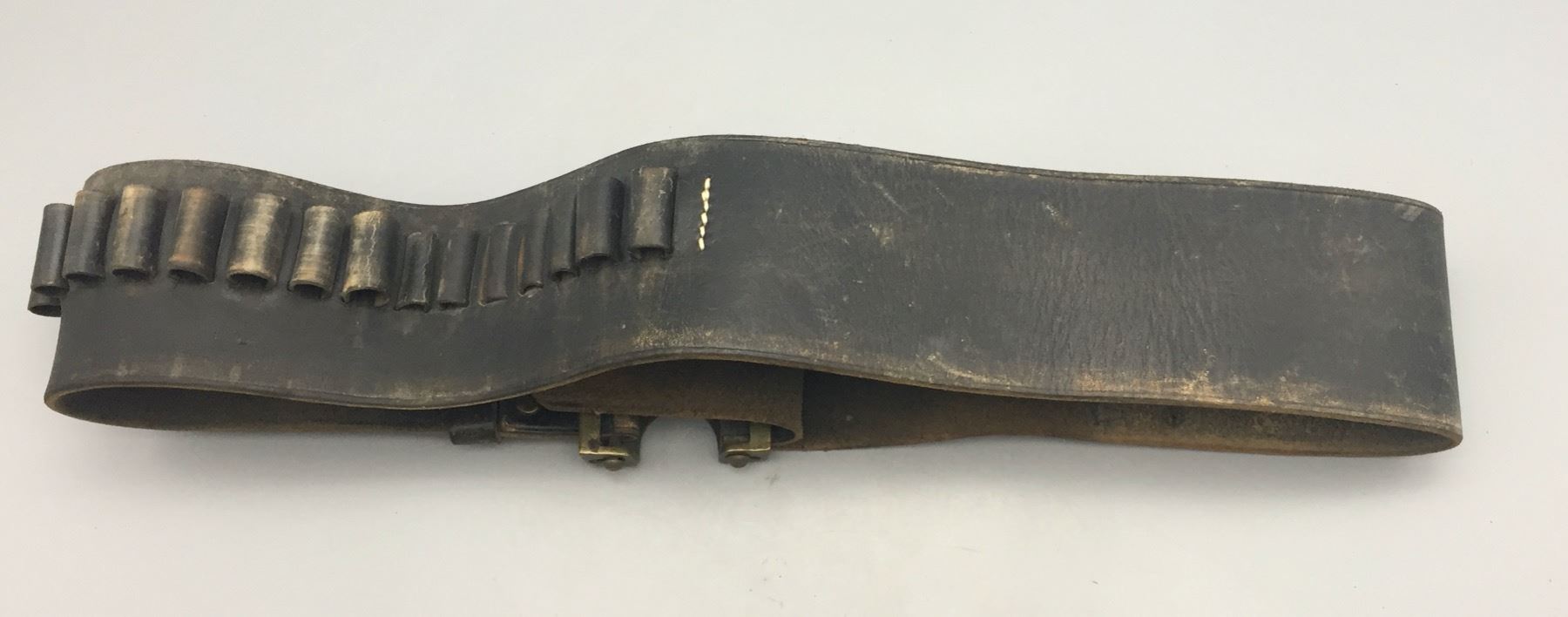 Description: Presented for sale in this lot is an Indian Wars era US marked leather cartridge belt with original buckle. It is for the .45-70 Springfield Trapdoor rifle cartridges. Maker: Unknown. Approx. Age: Late 1800s. Size: 38” long x 3” wide. Condition: Pretty good for its age, normal wear expected. Please look closely at the pictures - they are an important part of our description. Shipping: There will be a $5 handling / packaging fee for shipping this lot. The actual cost of postage will be added on top of that.