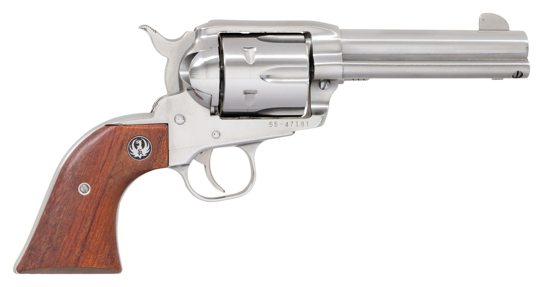 Cal. 45 Colt (45 LC). S# 55-47181. Shipped 1994 as Model 00554; Catalog No. KBNV-44. High polish stainless finish. Bbl. 4 3/4". 6 Shot cyl. Two piece rosewood grips. CONDITION: near excellent overall appearance with light marks. Very good bore. (25-3668/MD). MODERN. $350-500.