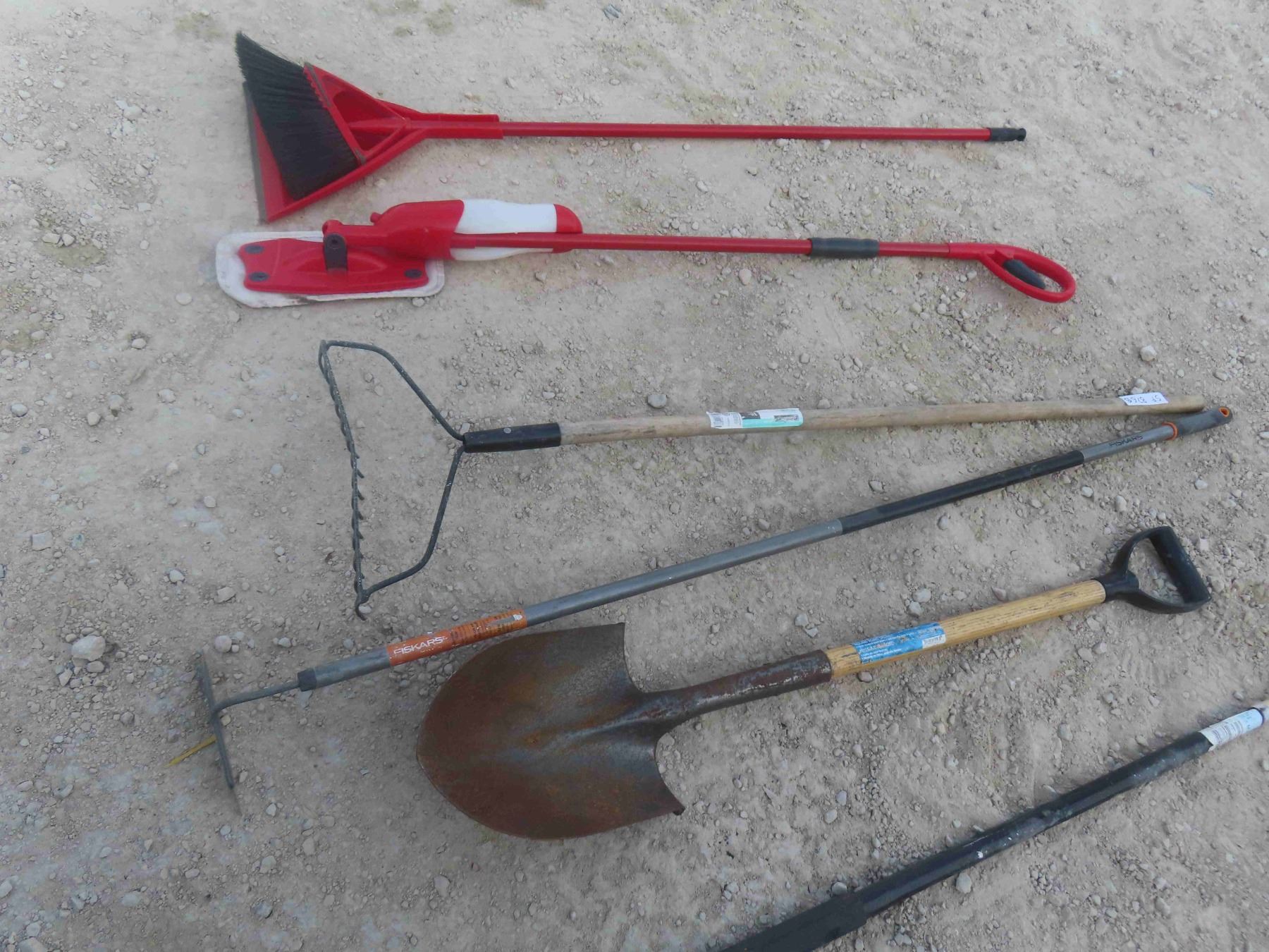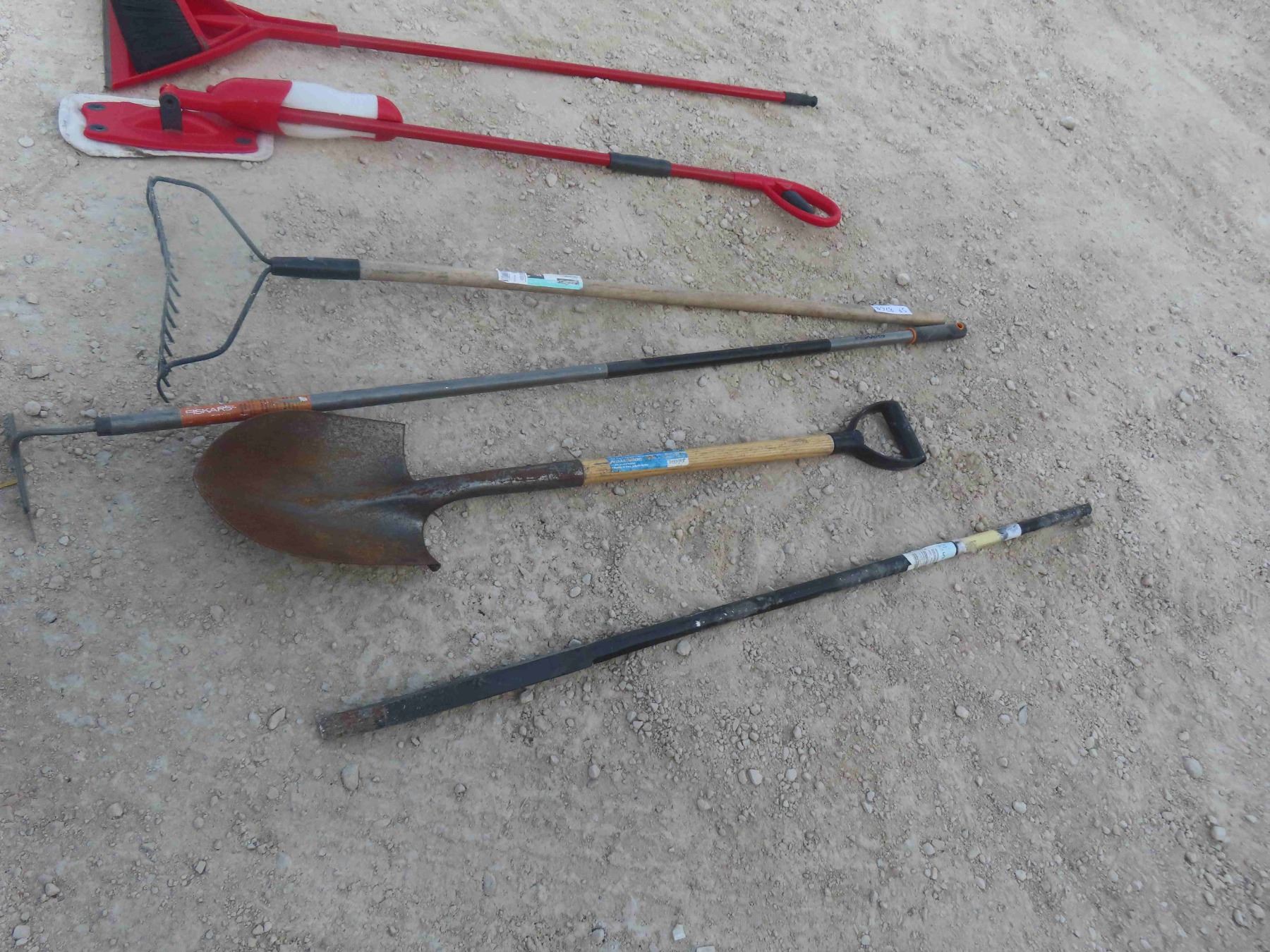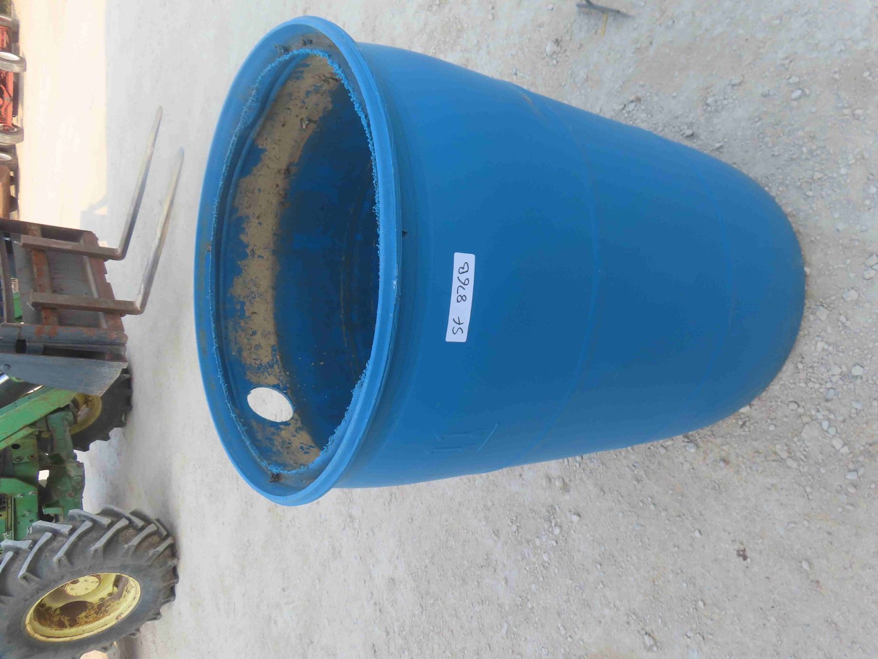 45 Gallon Poly Barrel with Hand Yard Tools: Spade, Fencing Bar, Hoe, Rake & More