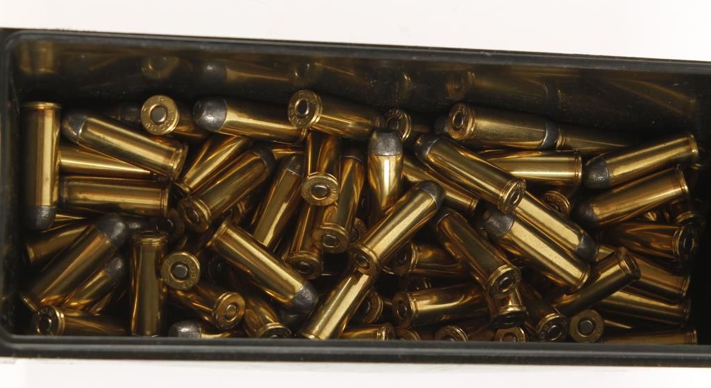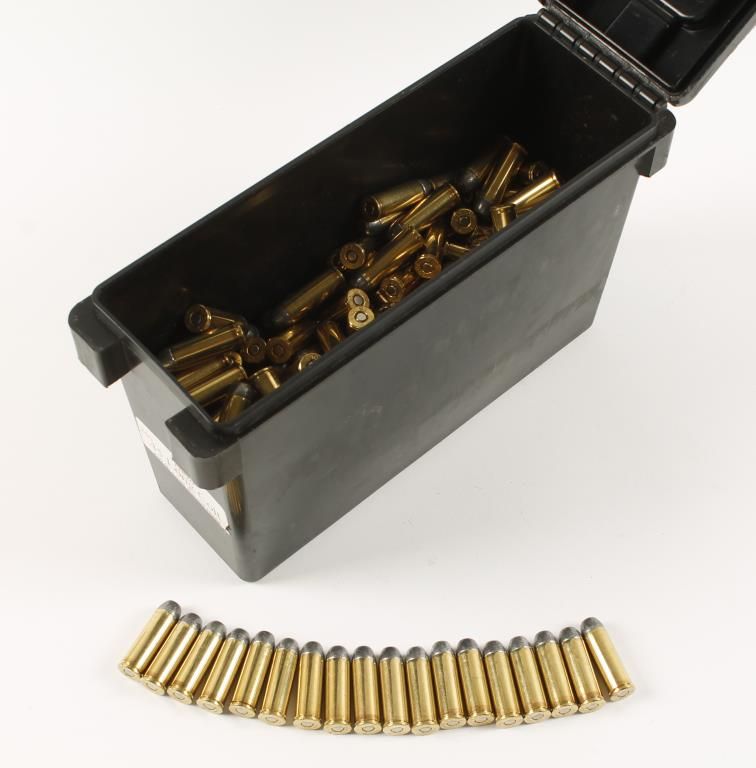 250 grain lead round nose. In plastic ammo box. Approx (250) rounds.