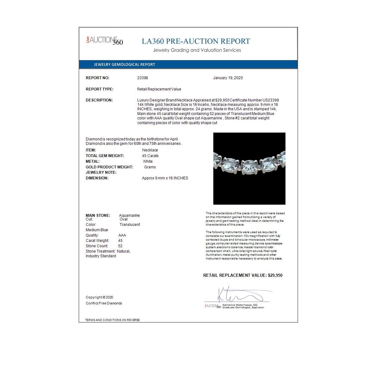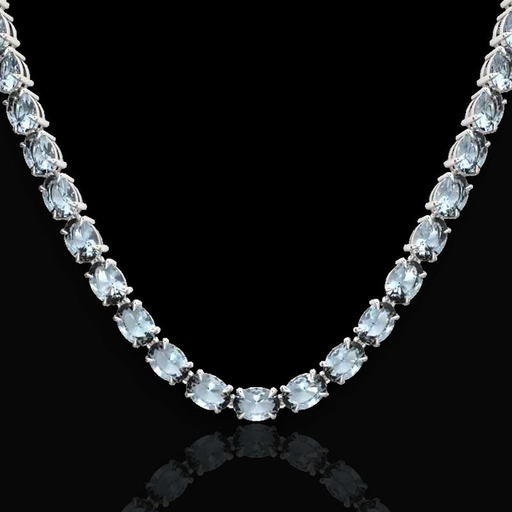 REF-418H5R - SKU: 23398 ---- 45 ctw Aquamarine Eternity Designer Necklace 14k White Gold