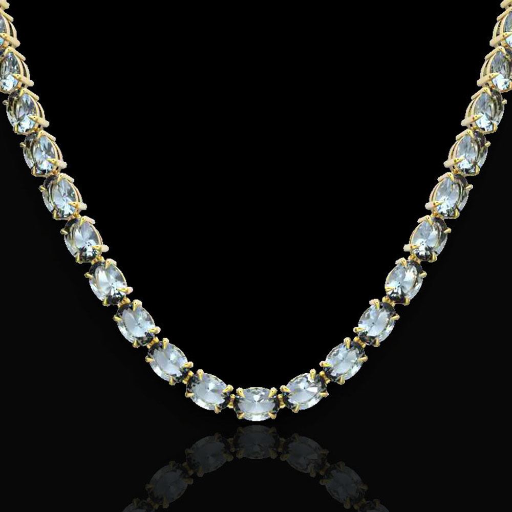 REF-418X5A - SKU: 23400 ---- 45 ctw Aquamarine Eternity Designer Necklace 14k Yellow Gold