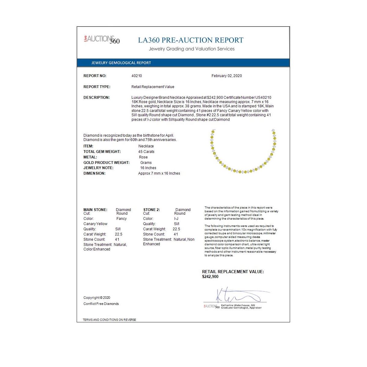 REF-5205M2G - SKU: 40210 ---- 45 ctw SI/I Fancy Yellow Diamond Necklace 18K Rose Gold