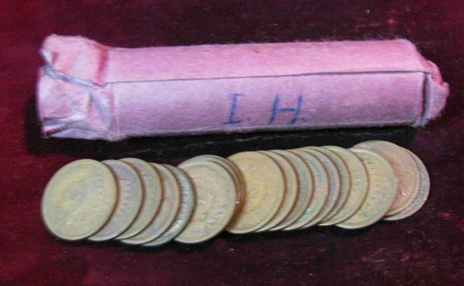451. Roll of (50) Mixed Date Indian Head Cents with grades up to EF.