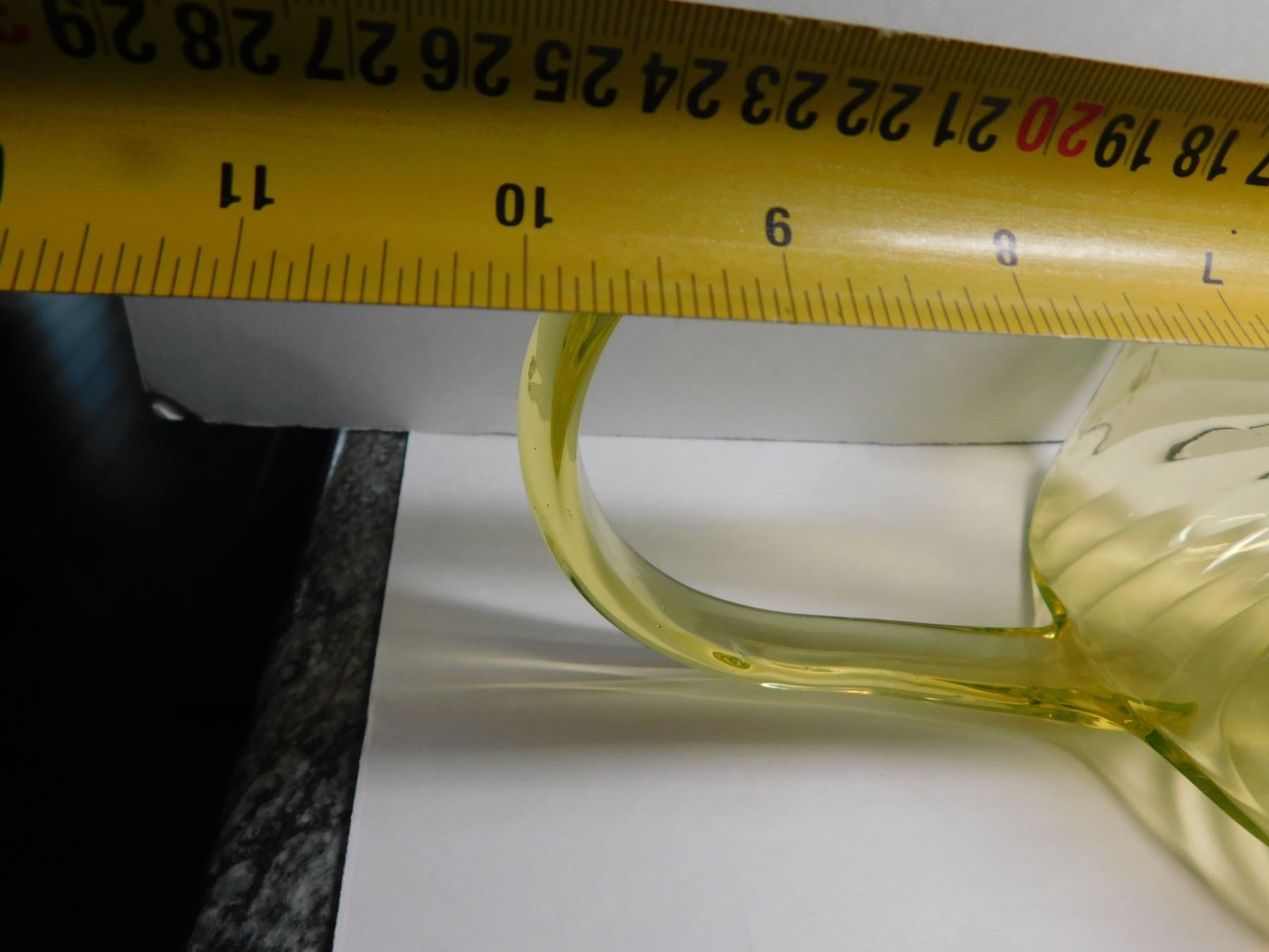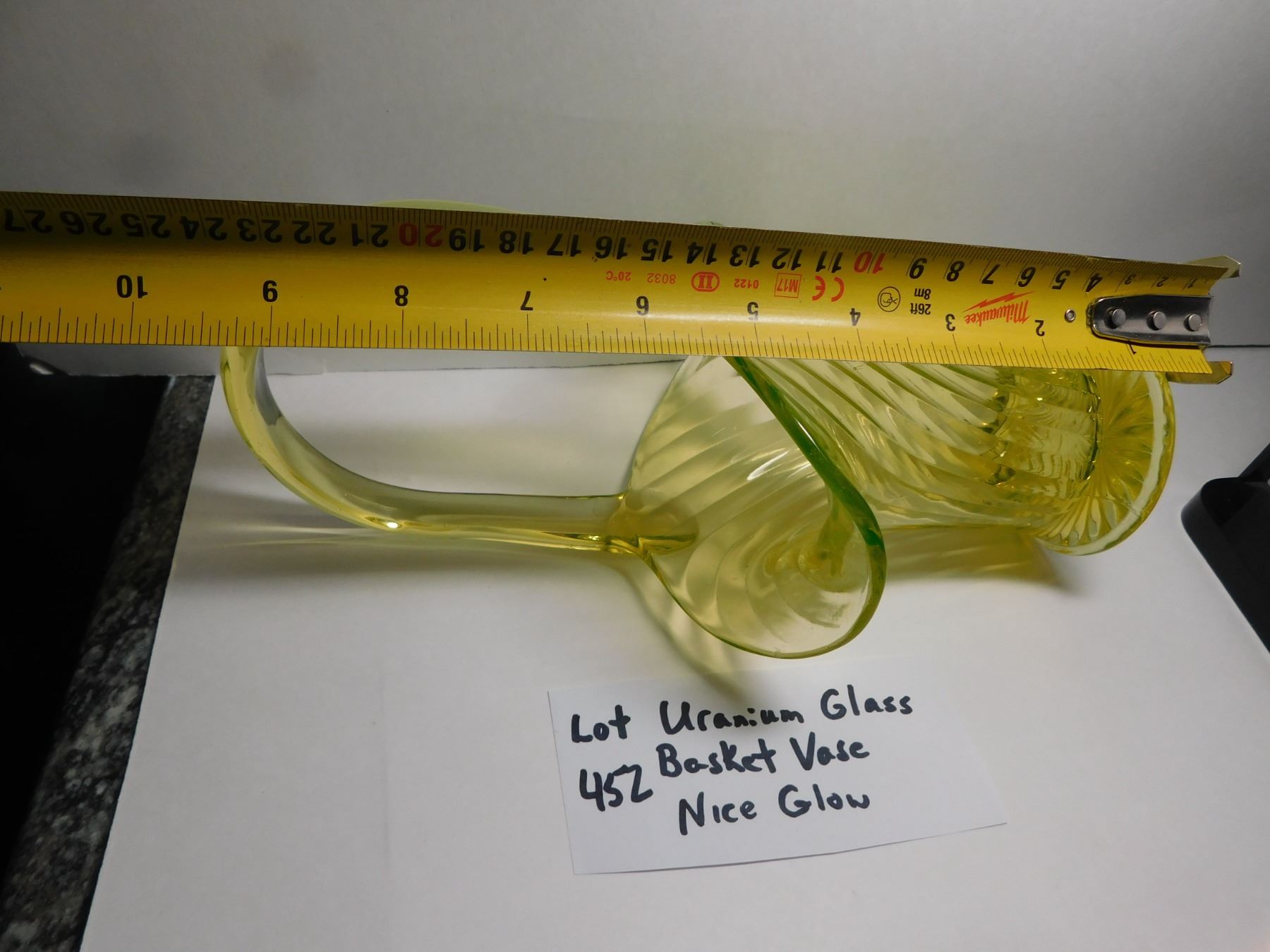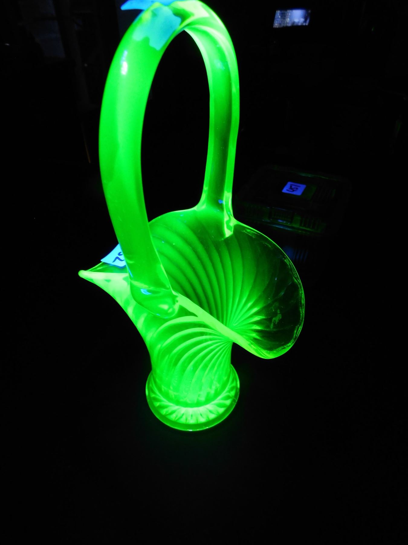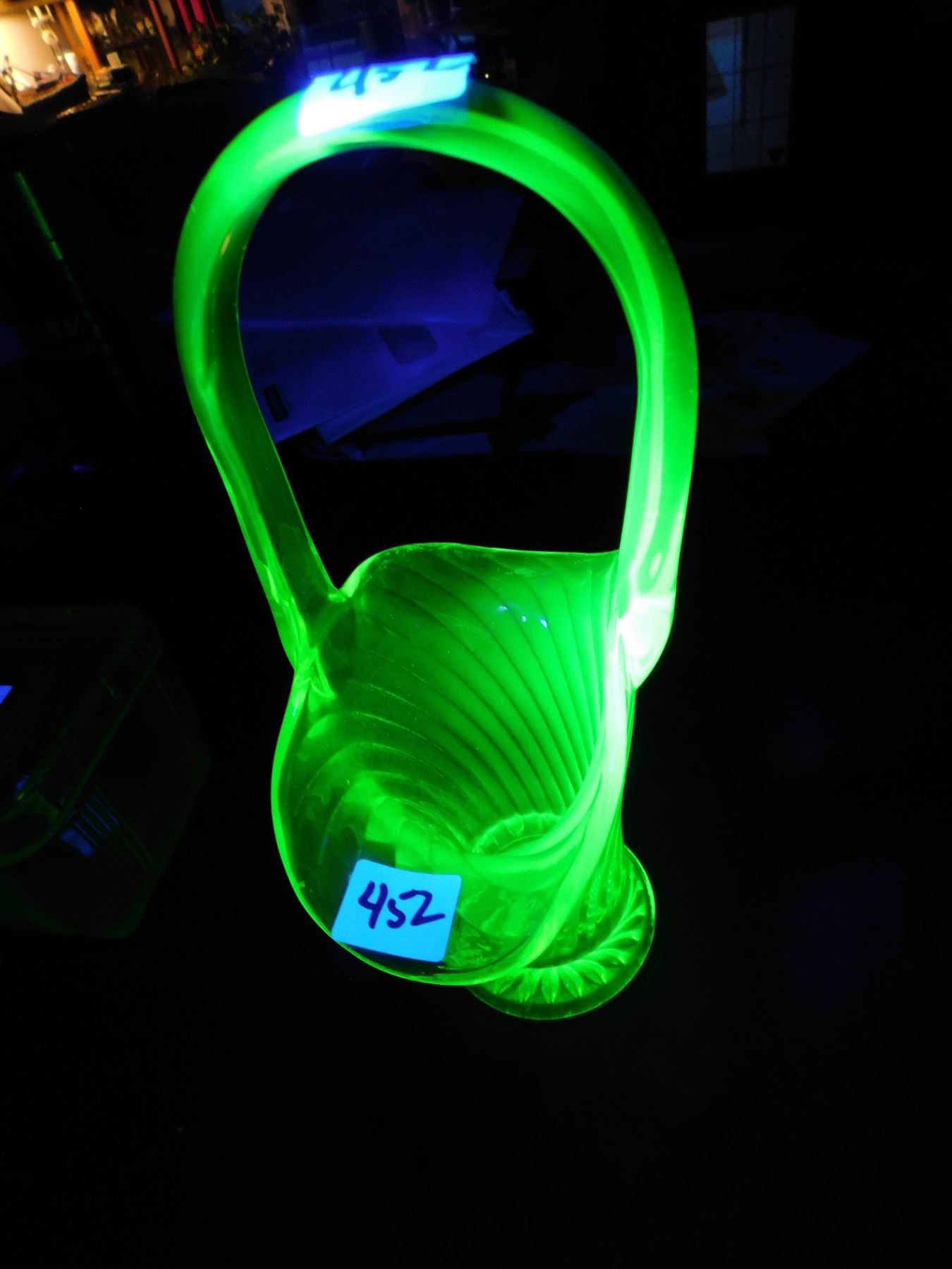 452. URANIUM GLASS BASKET VASE, LOVELY GLOW