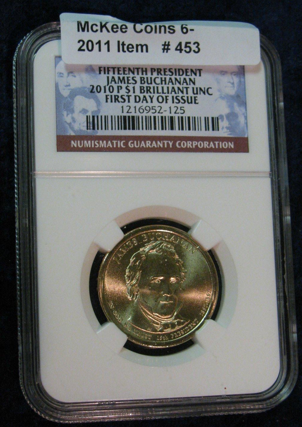 453. 2010 P James Buchanan Dollar NGC slabbed BU First Day of Issue.