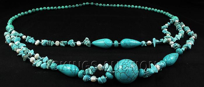 454.14CTW FASHION CHUNKY TURQUOISE NECKLACE **|**|** 33 INCHES DOUBLE ROW DESIGN CHUNKY TURQUOISE BEADS NECKLACE; CENTER ROUND SIZE: 21.79MM ; MSRP: $300
