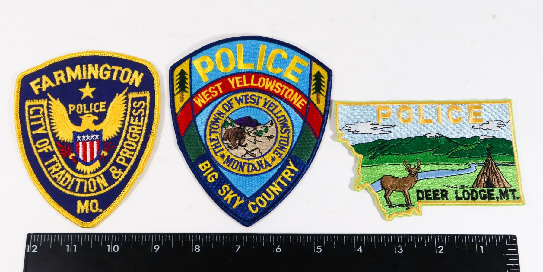 DEER LODGE WEST YELLOWSTONE FARMINGTONUNITED STATES OF AMERICA VINTAGE LAW ENFORCEMENT POLICE INSIGNIA PATCH CREST USA