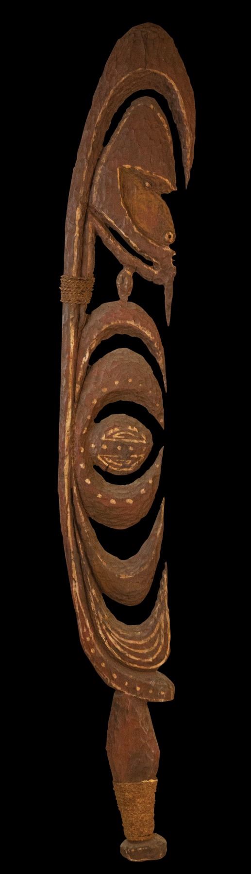 (1960s) This gorgeous OA showroom wall sample for one of the most striking wall figures of the OA catalog. Sports a very subtle patinated look with polychrome decoration. Double sided. 53.5"x7". VG+ with typical wear.