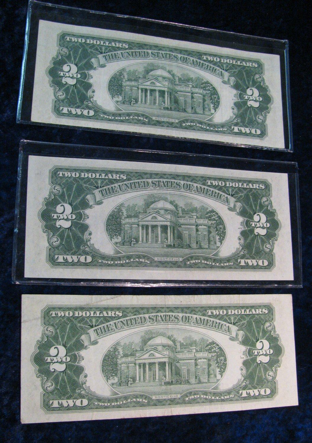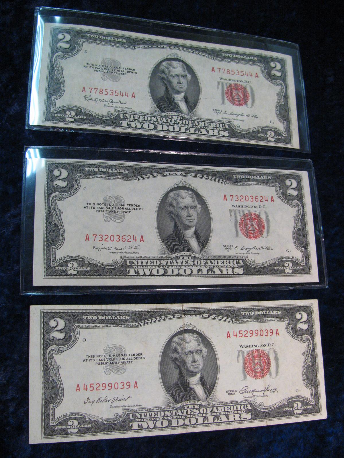 454. Series 1953, 53B, & C $2 U.S. Notes. "Red Seals" VG-AU. (3 notes total).