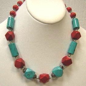STABILIZED TURQUOISE AND BAMBOO CORAL NECKLACE. IT WEIGHTS 455 CTS. LENGTH: 19 INCHES. SILVER PLATED