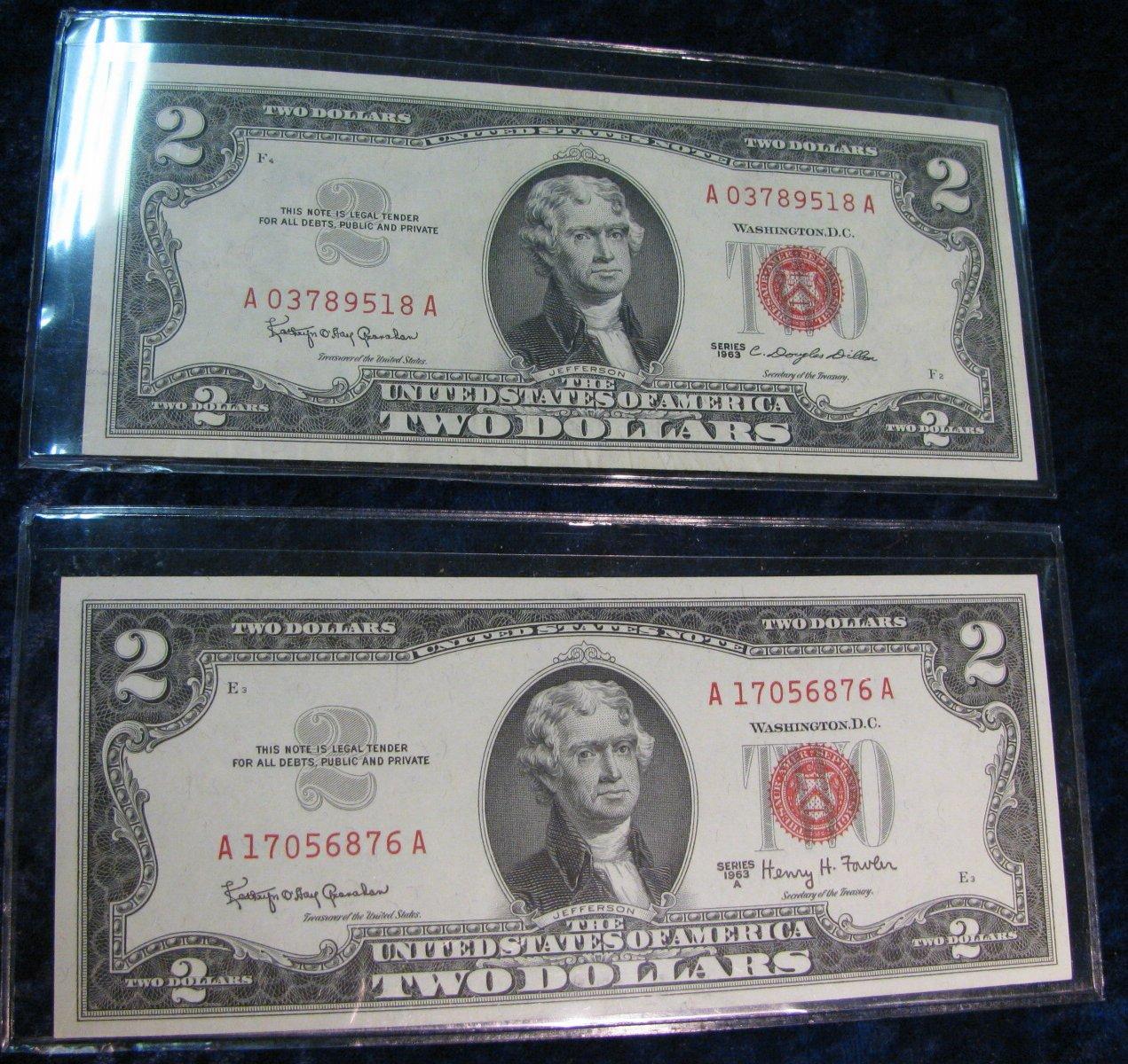 455. Series 1963 & 63A $2 U.S. Notes. "Red Seals".AU-Unc.