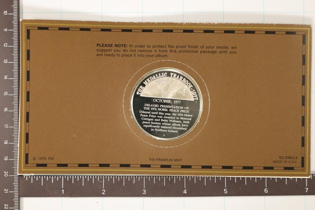 MEDALLIC YEAR BOOK, DELAYED PRESENTATION OF THE 1976 NOBEL PEACE PRIZE. IN FRANKLIN MINT PACKAGING