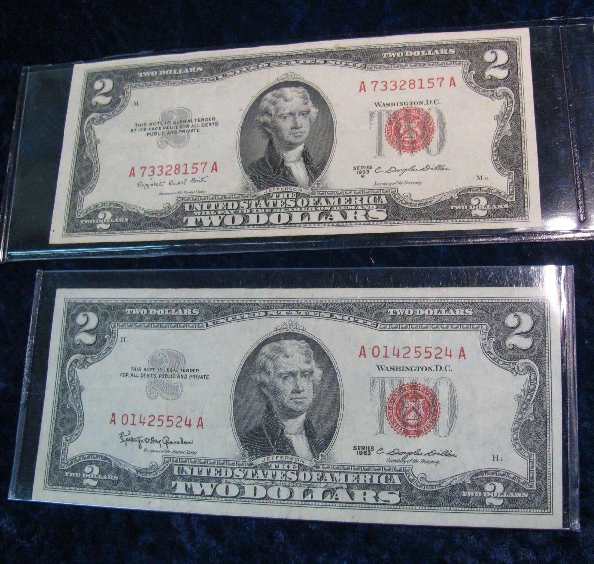 458. Series 1953B & 63 $2 U.S. Notes. "Red Seals". VF-EF