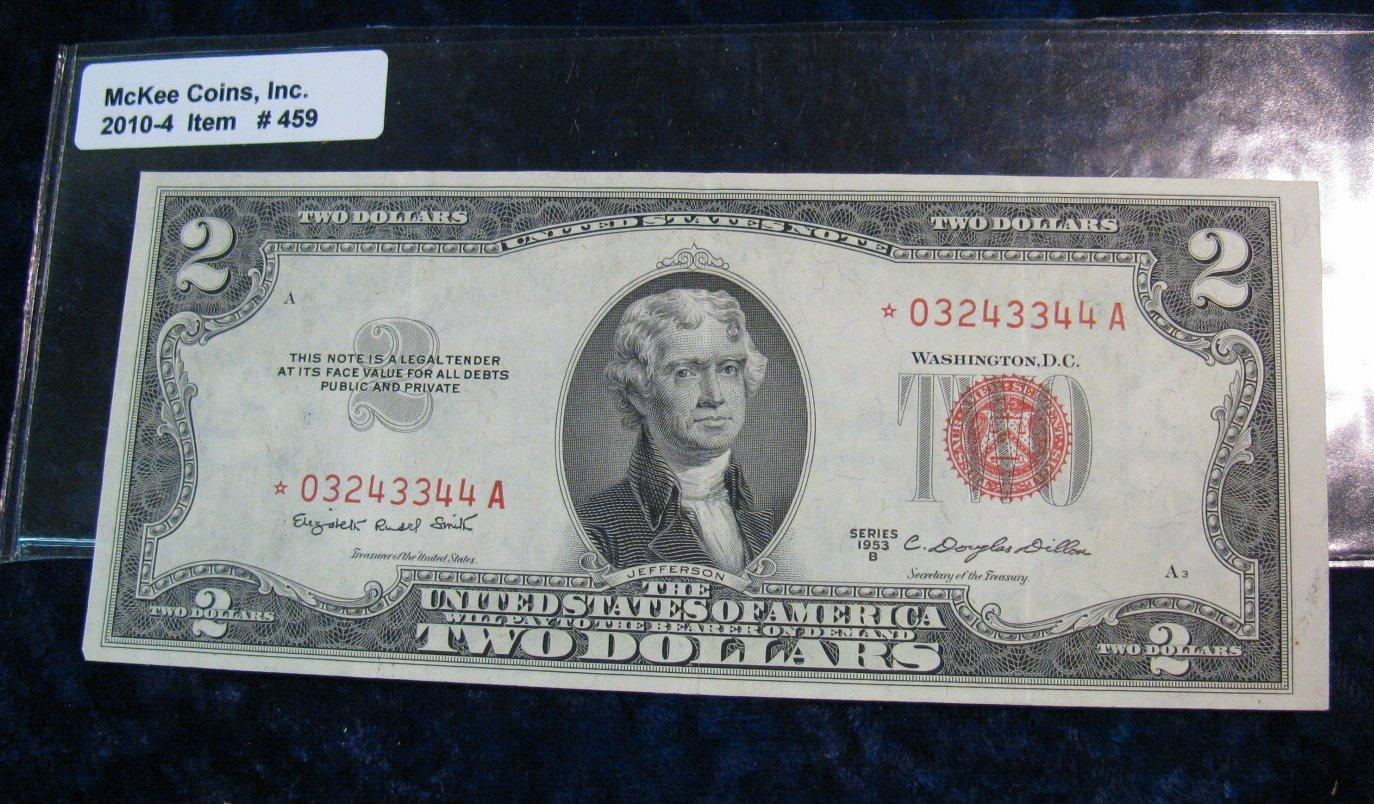 459. Series 1953B Star Replacement $2 U.S. Notes. "Red Seals". VF-EF.