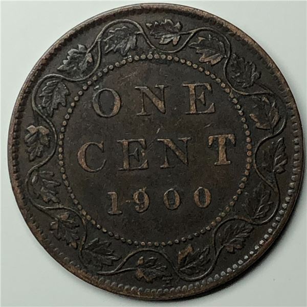 Canadian Large Cent 1900 NO-H Semi Key Date VF++