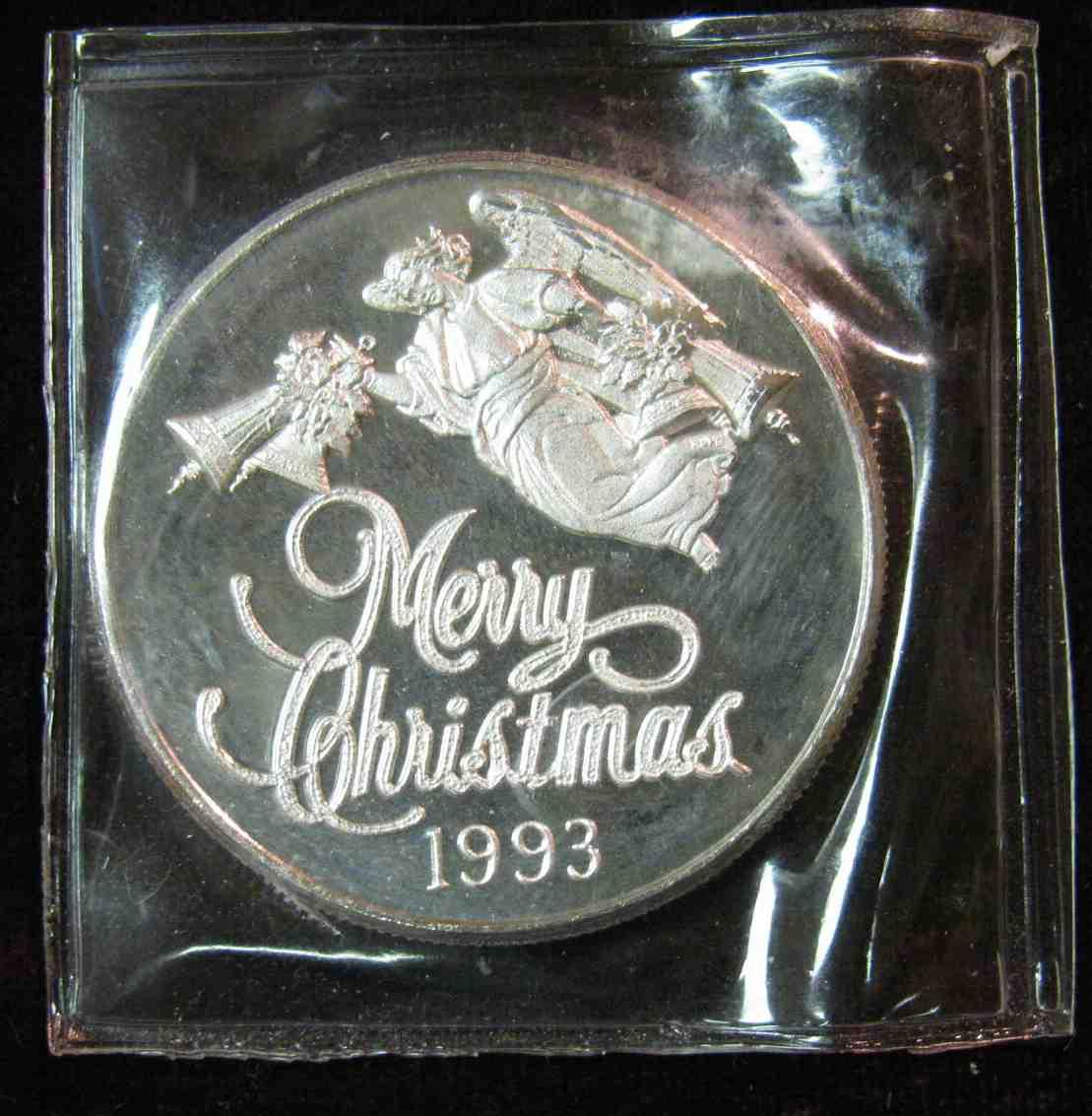 46. 1993 "Merry Christmas" "Peace on Earth" One Troy Ounce .999 Fine Silver Round.
