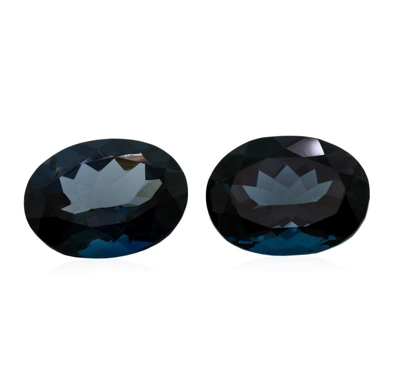 One natural oval cut london blue topaz parcel of two with an exact weight of 46.28ctw., clarity is eye clean, slightly grayish greenish blue, dark to medium dark. Gemological Appraisals Services estimates the retail value at $925.6 GAS Appraised.