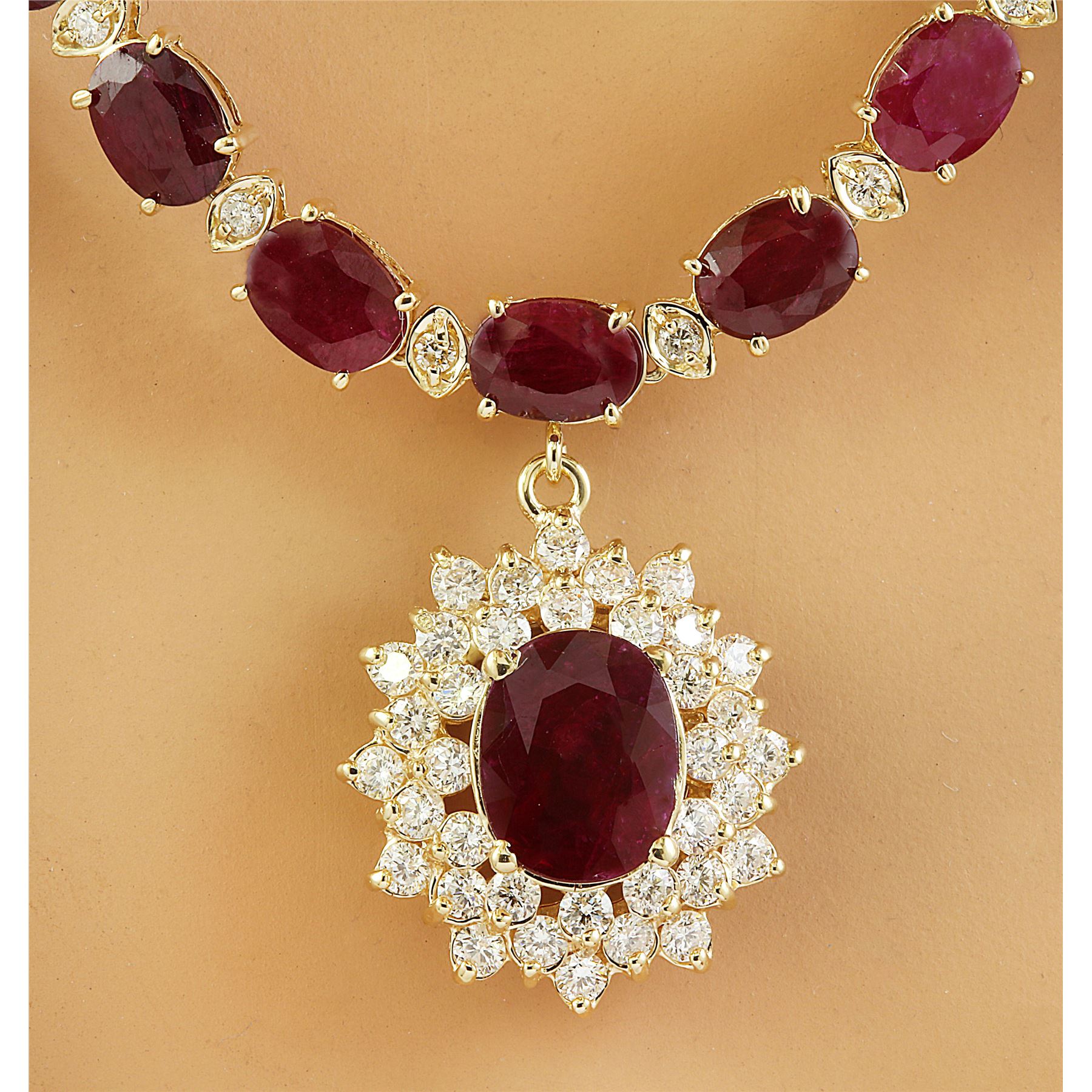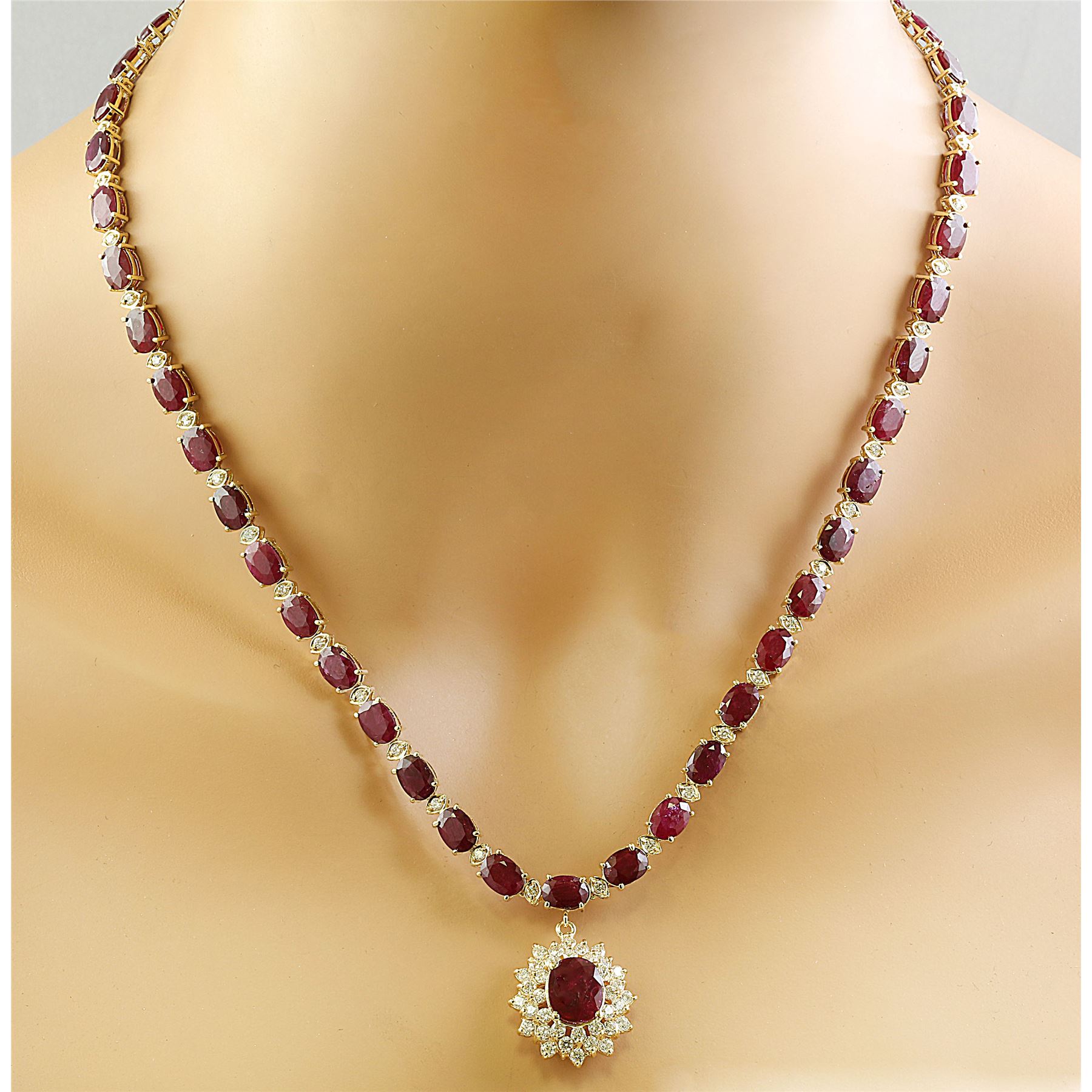 46.40 CTW Ruby 14K Yellow Gold Diamond Necklace