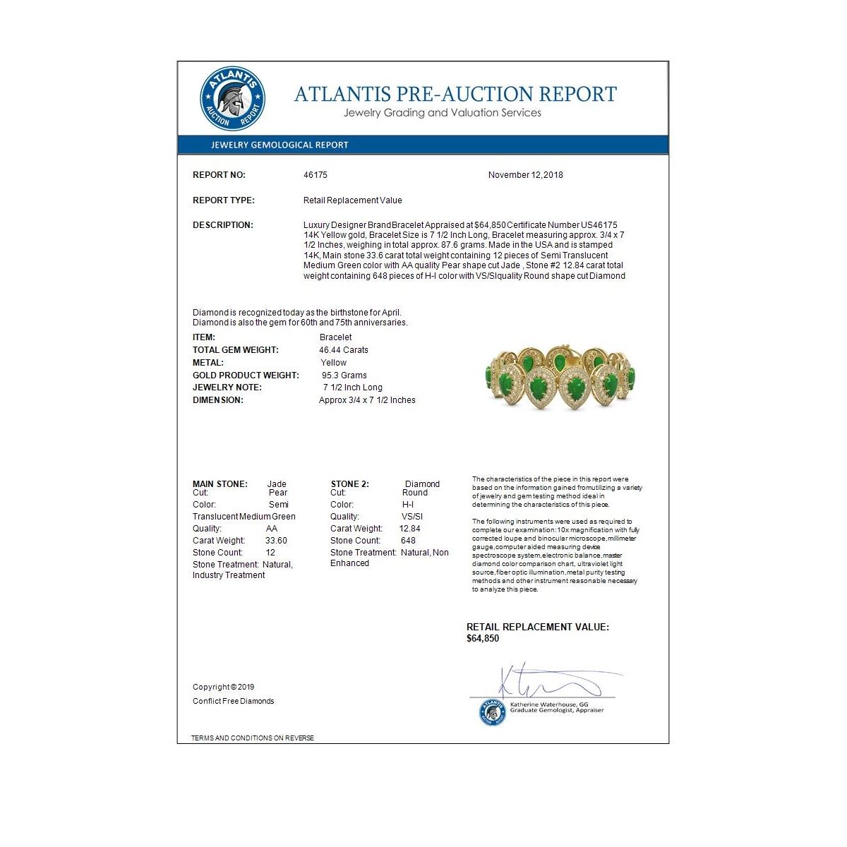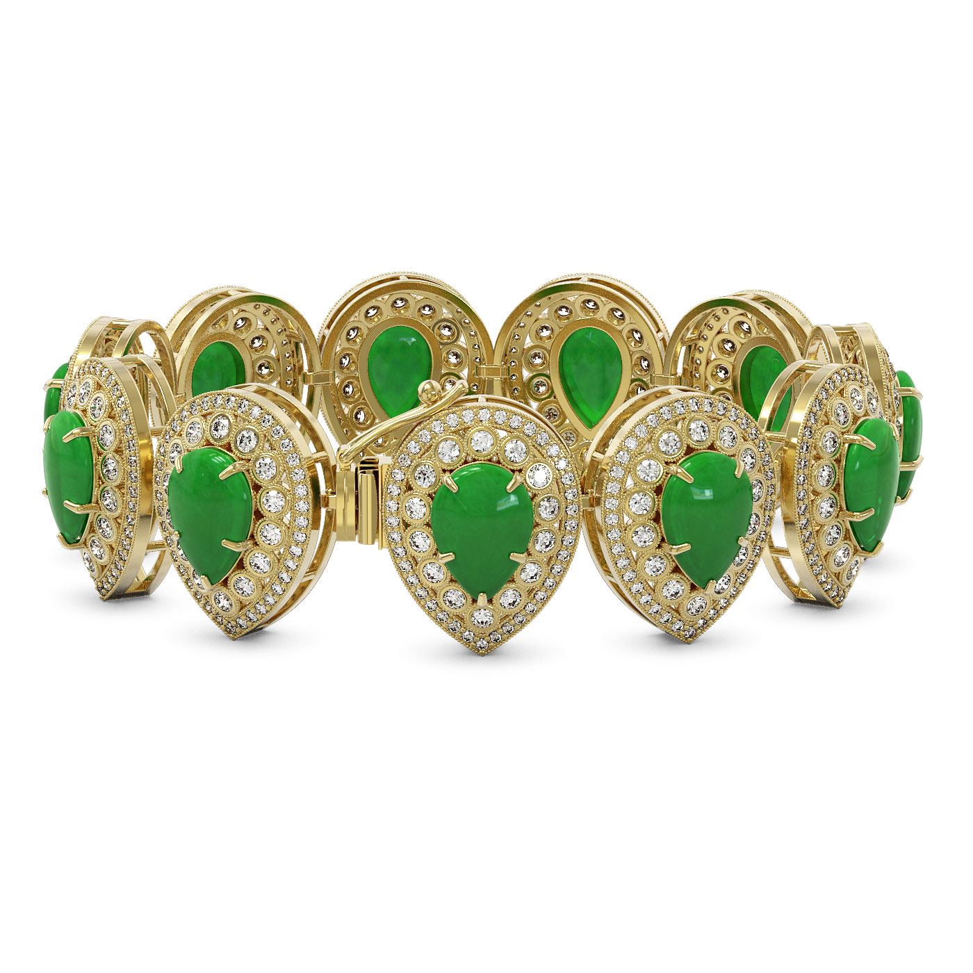 46.44 ctw Jade & Diamond Bracelet 14K Yellow Gold