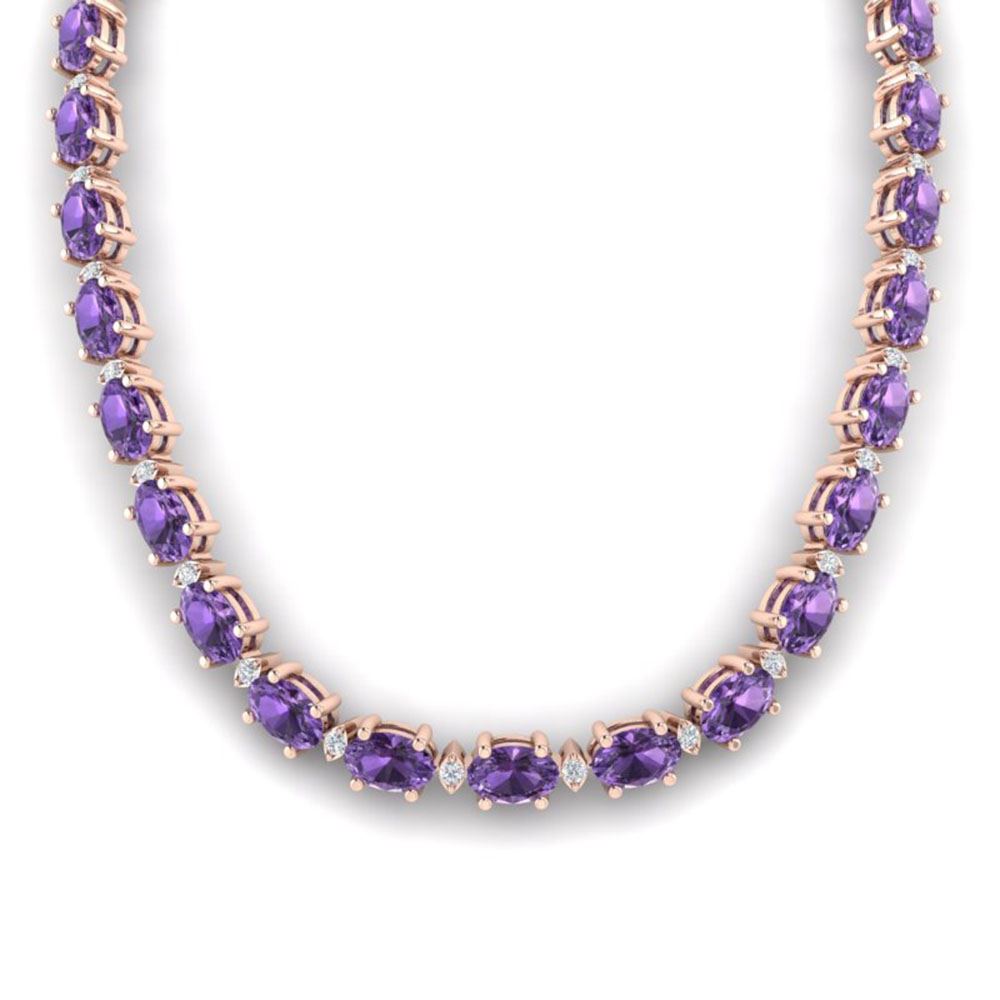 REF-245H5R - SKU: 29414 ---- 46.5 ctw Amethyst & VS/SI Diamond Eternity Necklace 10k Rose Gold