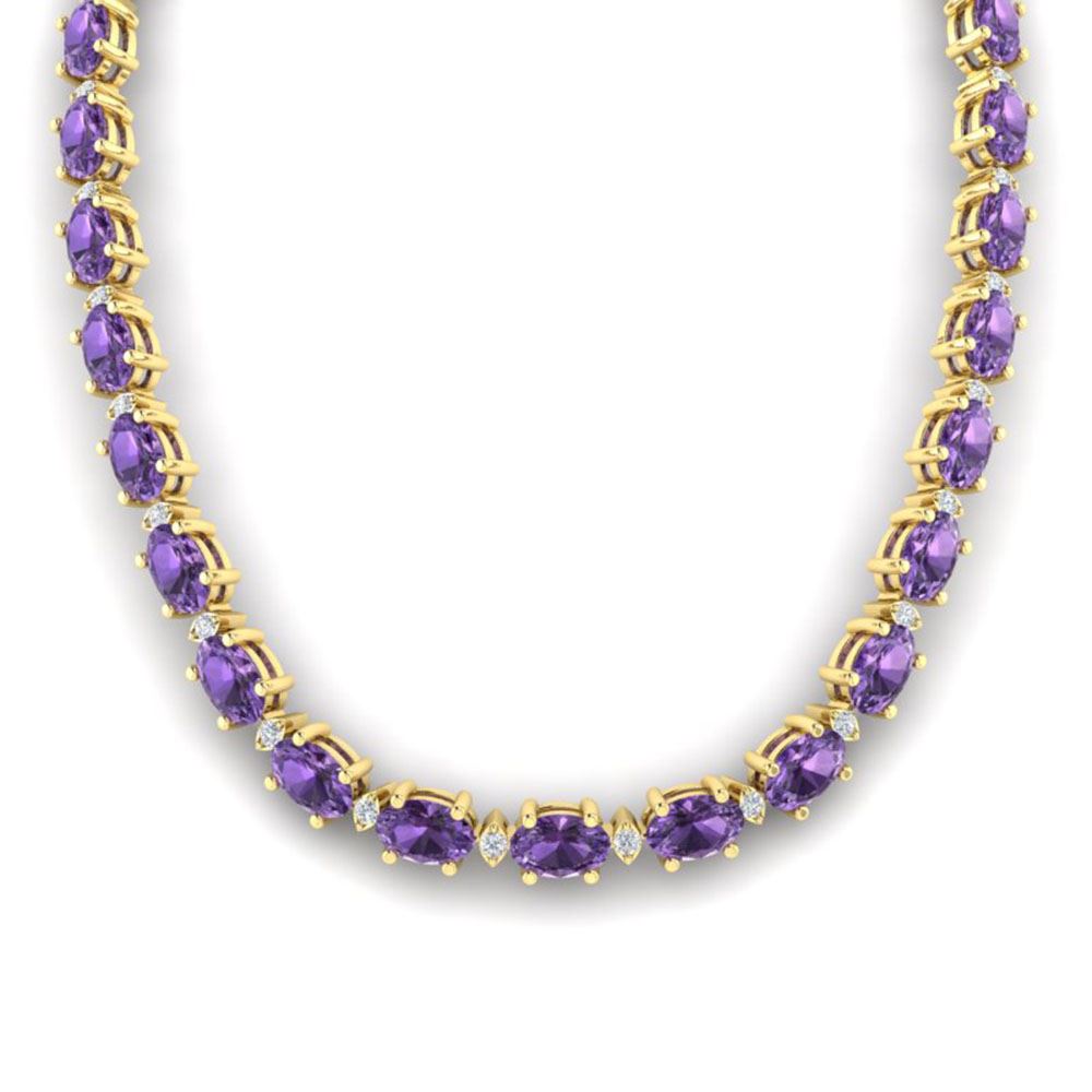 SKU: 29415 ---- 46.5 ctw Amethyst & VS/SI Diamond Eternity Necklace 10k Yellow Gold