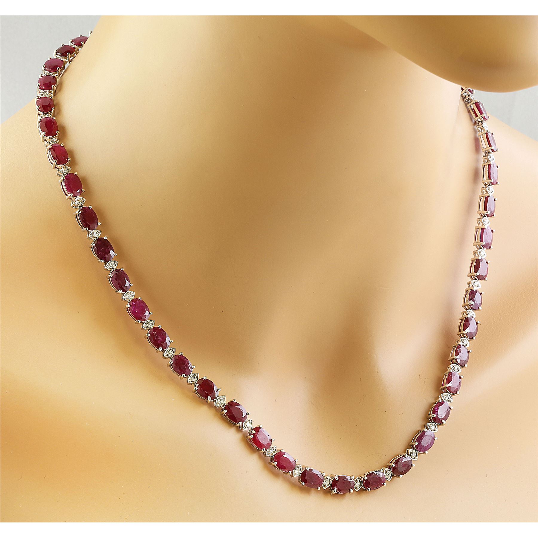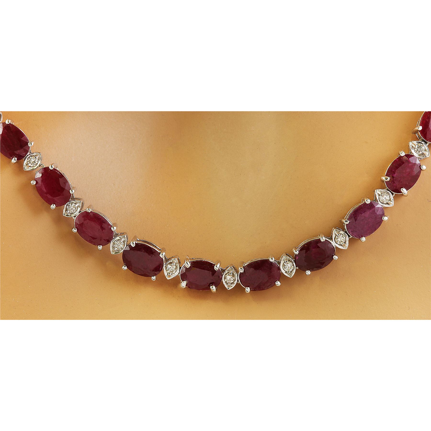 46.80 CTW Ruby 14K White Gold Diamond Necklace