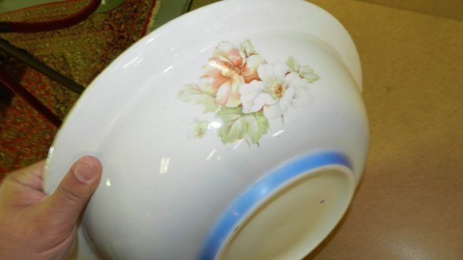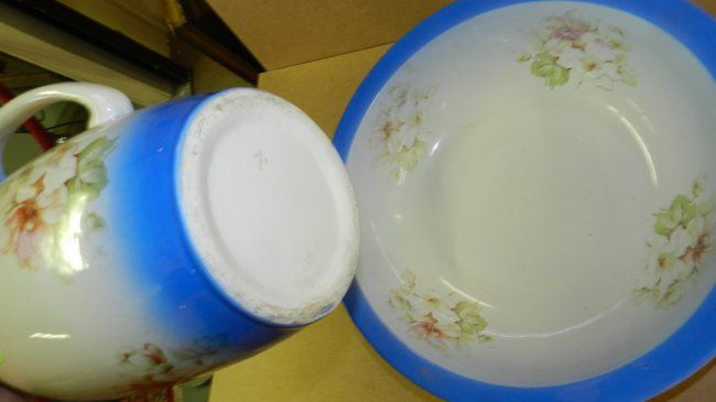 46) Floral painted porcelain pitcher and bowl, COND VG