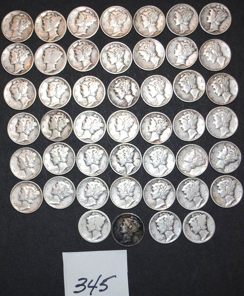 46 MERCURY DIMES FROM SAFE DEPOSIT - MIXED DATES AND MINTS - SOLD PER COIN TIMES 46
