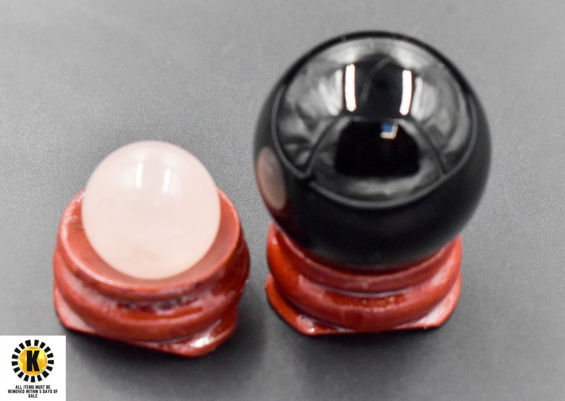 #46-NATURAL BLACK OBSIDAN, ROSE QUARTZ SPHERE BAL