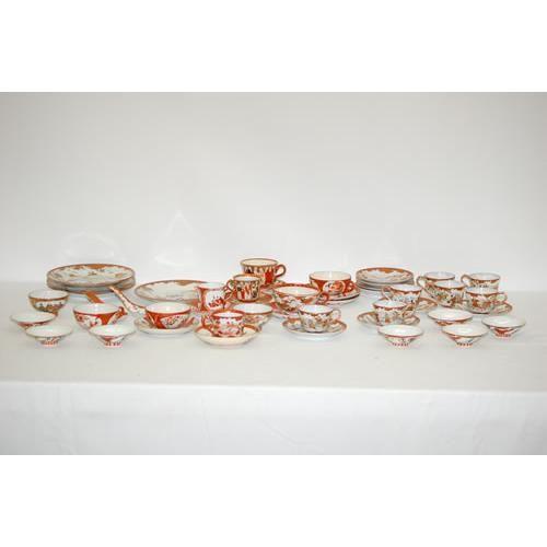 46 PCS. MISC. KUTANI CHINA - VARIOUS PATTERNS INCLUDING LANDSCAPES & FLORALS & FORMS INCLUDING CUPS, SAUCERS, PLATES & SPOONS (EARLY 20TH CENT.) - WEAR, MISC. CRACKS & CHIPS, IMPERFECTIONS
