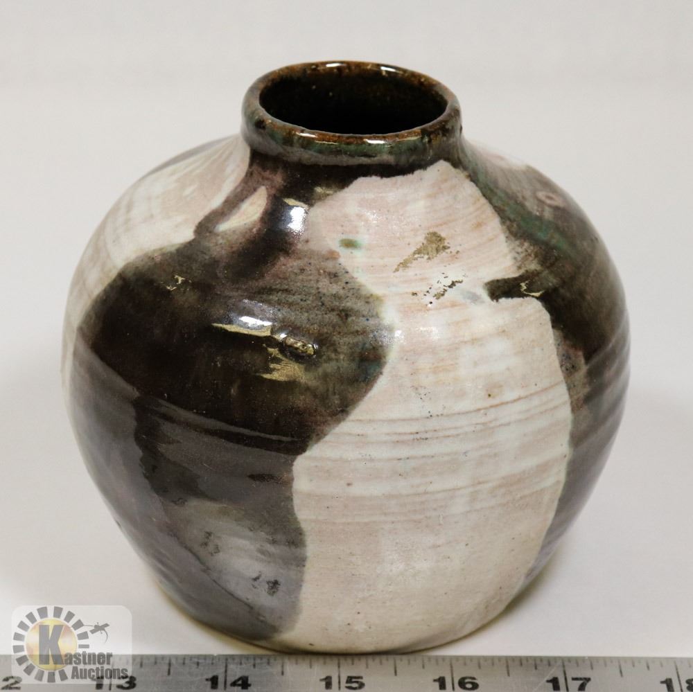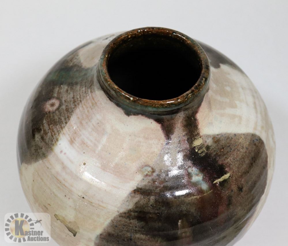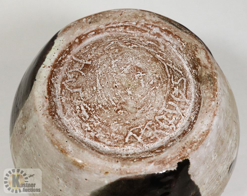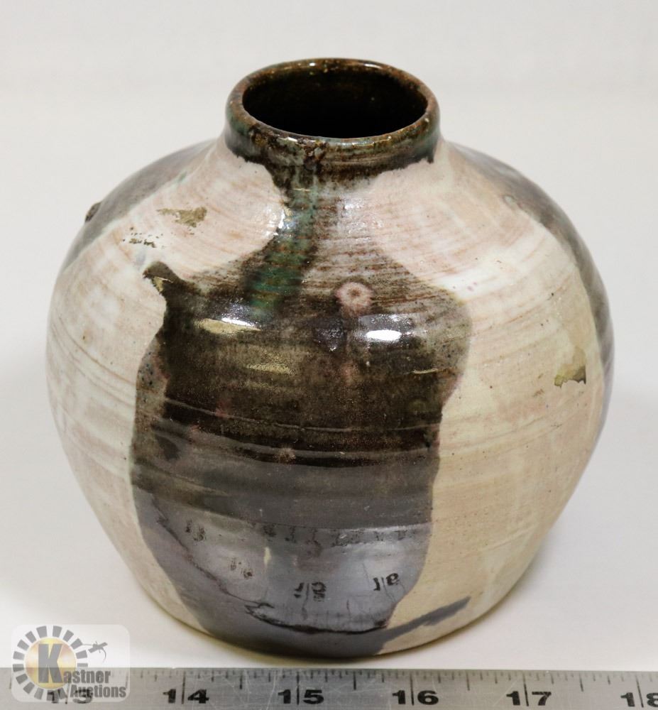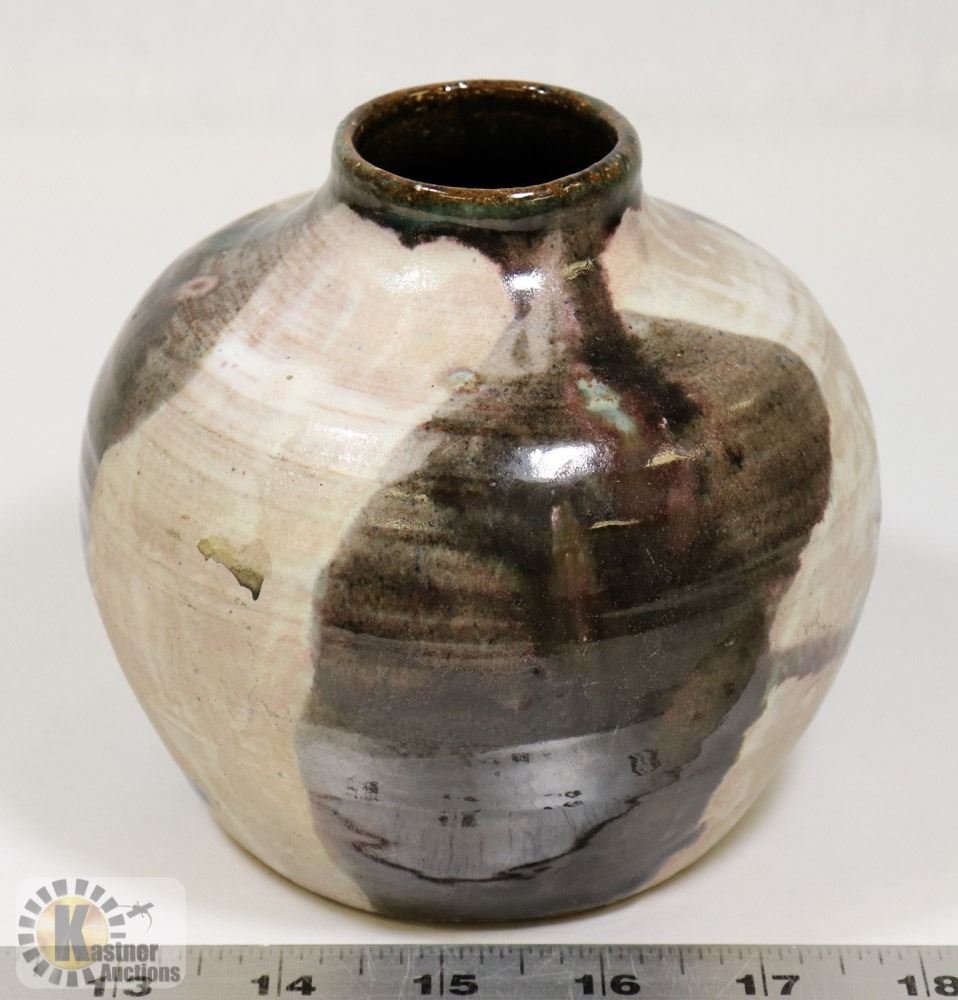 46) TWO TONED GLAZED POT, SIGNED MH PROVOST