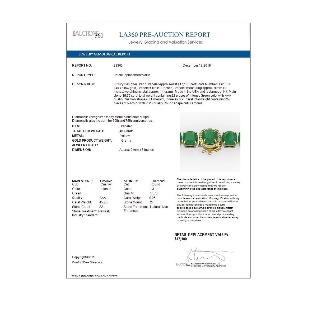 REF-345X5A - SKU: 23306 ---- 46 ctw Emerald & Micro Pave Diamond Bracelet 14k Yellow Gold