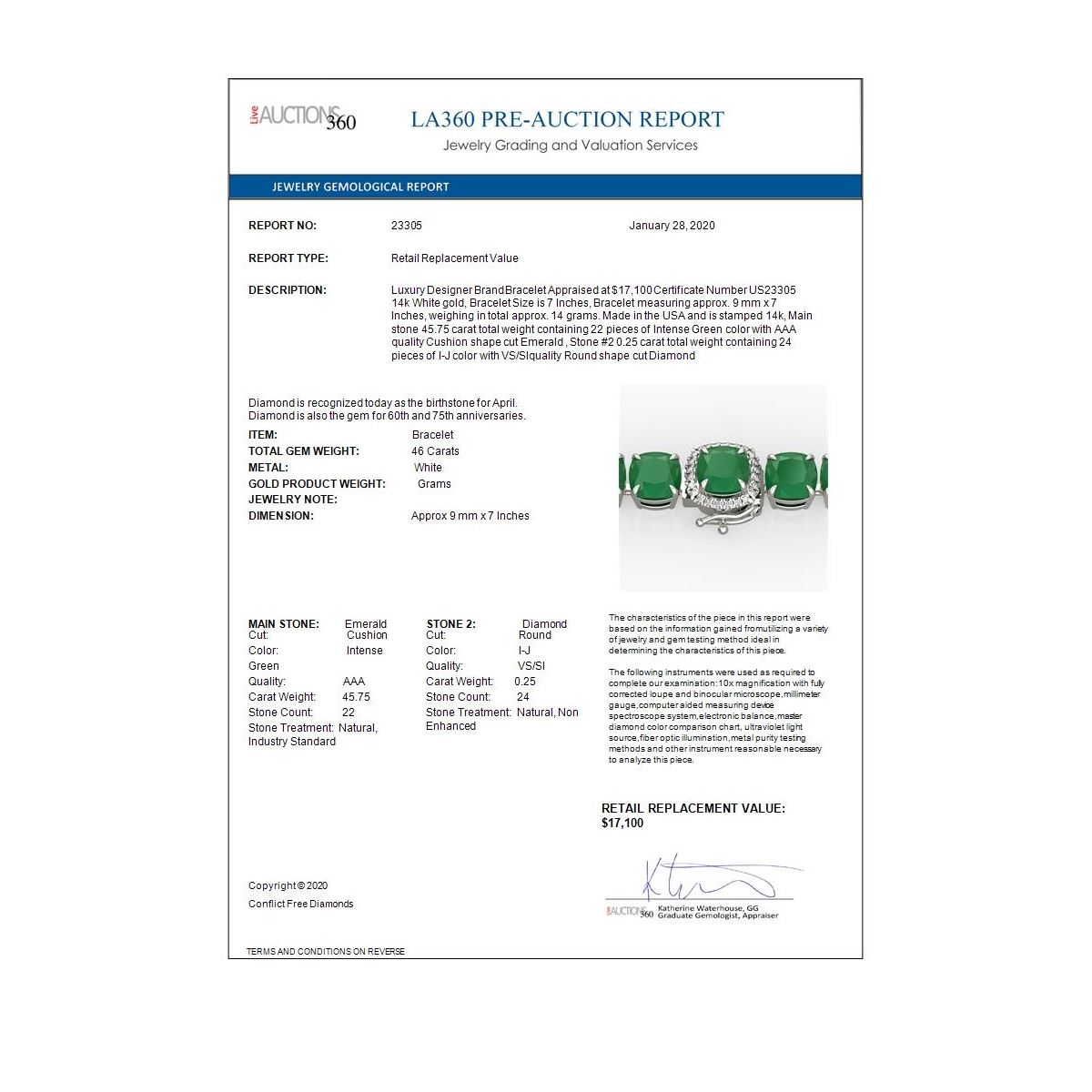 REF-345M5G - SKU: 23305 ---- 46 ctw Emerald & Micro VS/SI Diamond Bracelet 14k White Gold