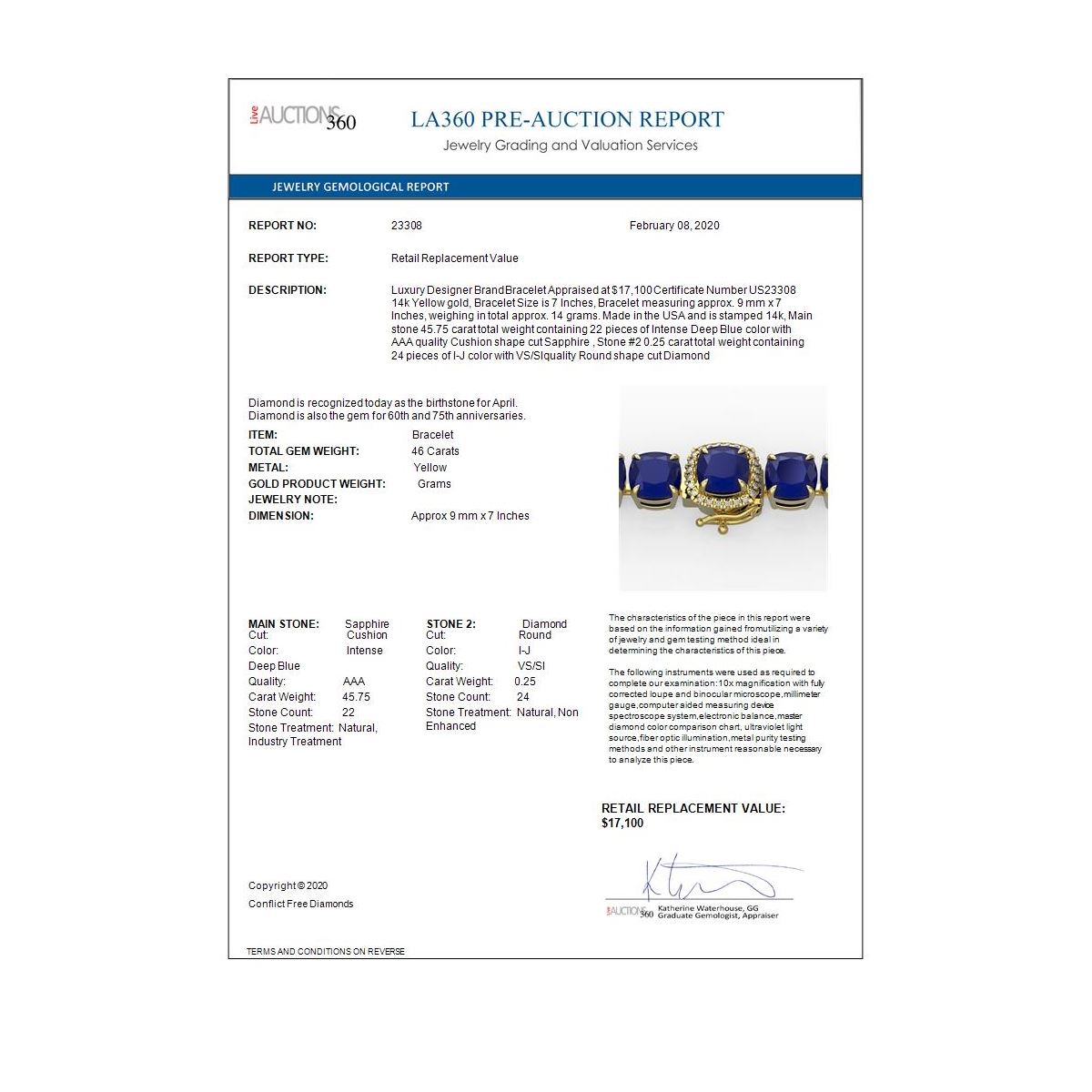 REF-345H5R - SKU: 23308 ---- 46 ctw Sapphire & Micro Pave Diamond Bracelet 14k Yellow Gold
