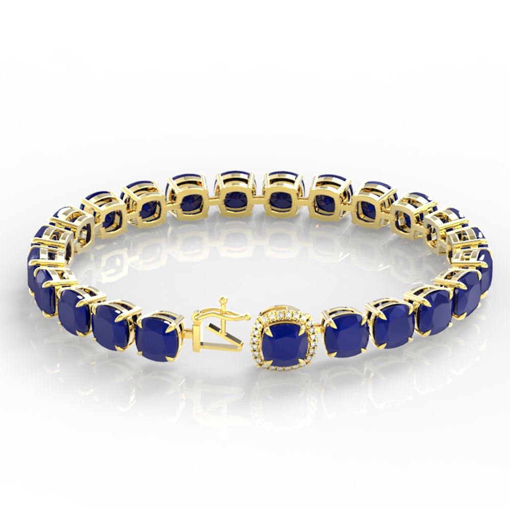 REF-345H5R - SKU: 23308 ---- 46 ctw Sapphire & Micro Pave Diamond Bracelet 14k Yellow Gold