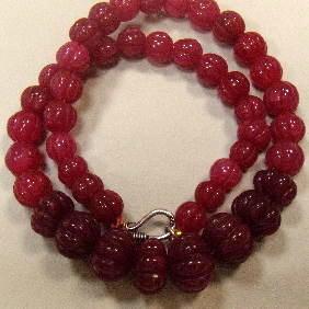 460 CTS CARVED GLASS FILLED ENHANCED RUBY STRAND - TEMPORARY CLASP