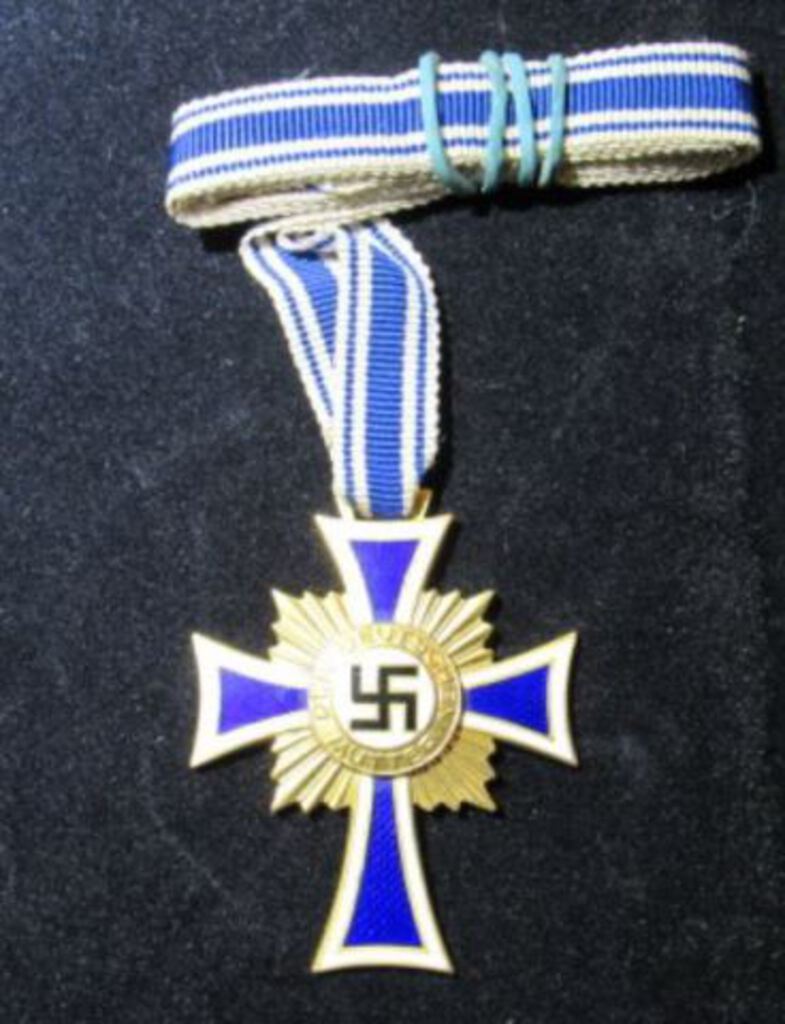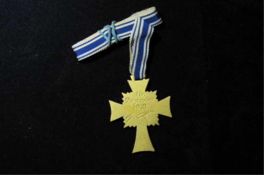 1st Class Gold Cross: Eligible Mothers With 8 Or More Children. Includes The Ribbon, Back Is Stamped Dezember (december)16, 1938, Front Says "der Deutschen Mutter". The Crosses Were Awarded Annually On The Second Sunday In