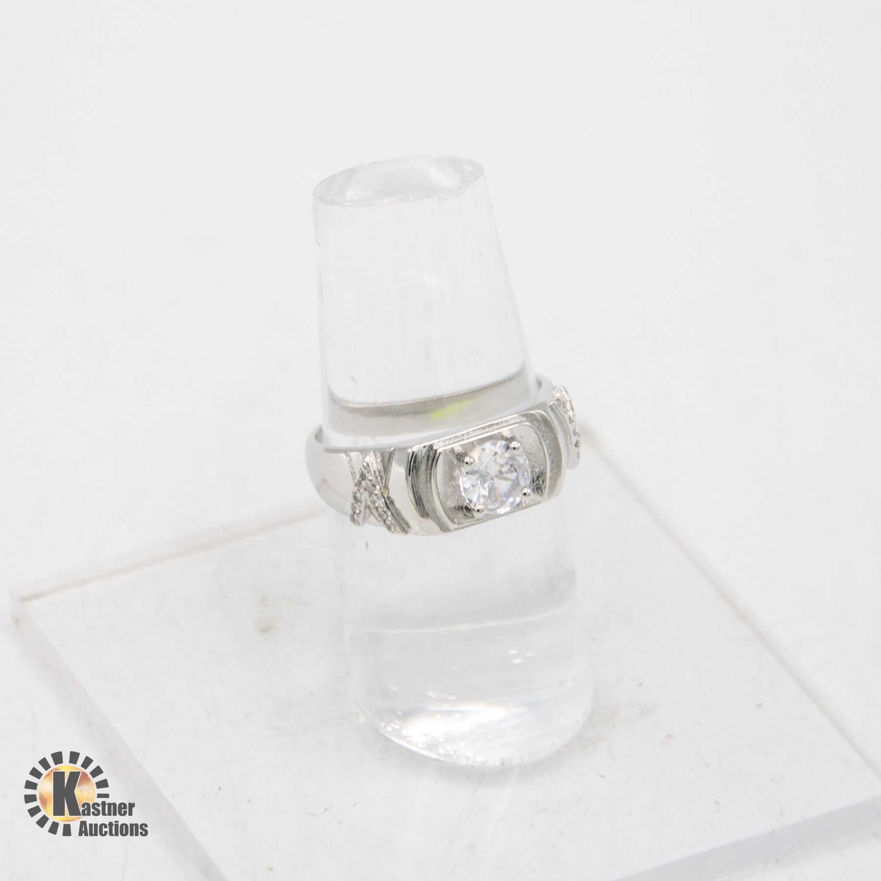 CUBIC ZIRCONIA ON EACH SIDE IN A V SHAPE RING SIZE 8.75