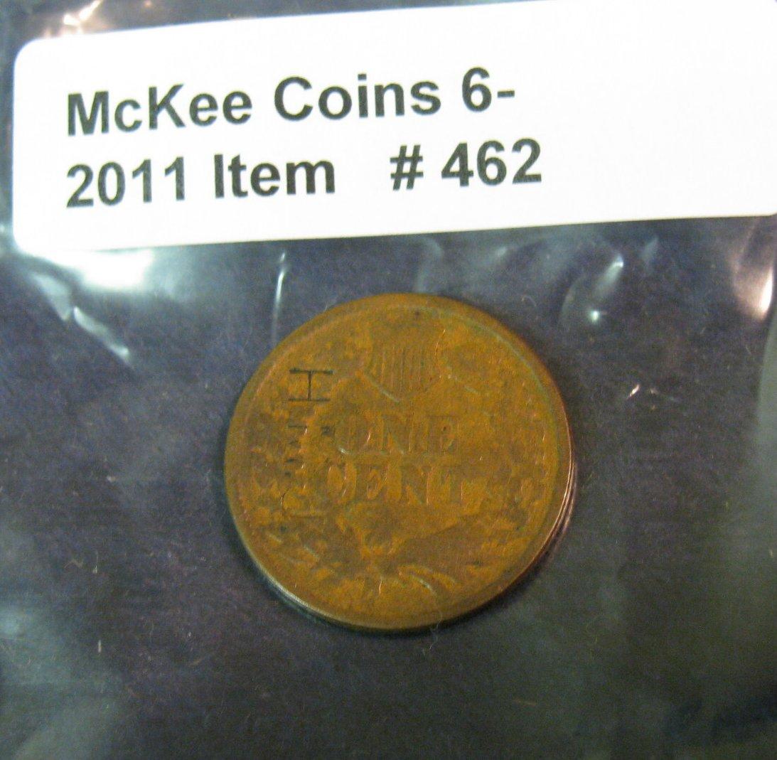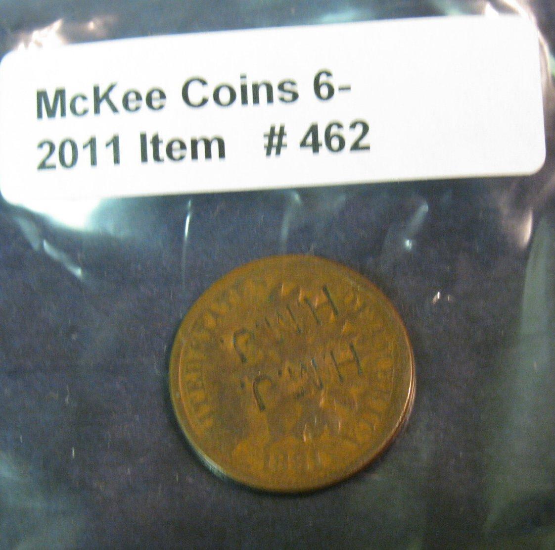 462. 1881 Indian Cent Counterstamped twice "H.M.J."